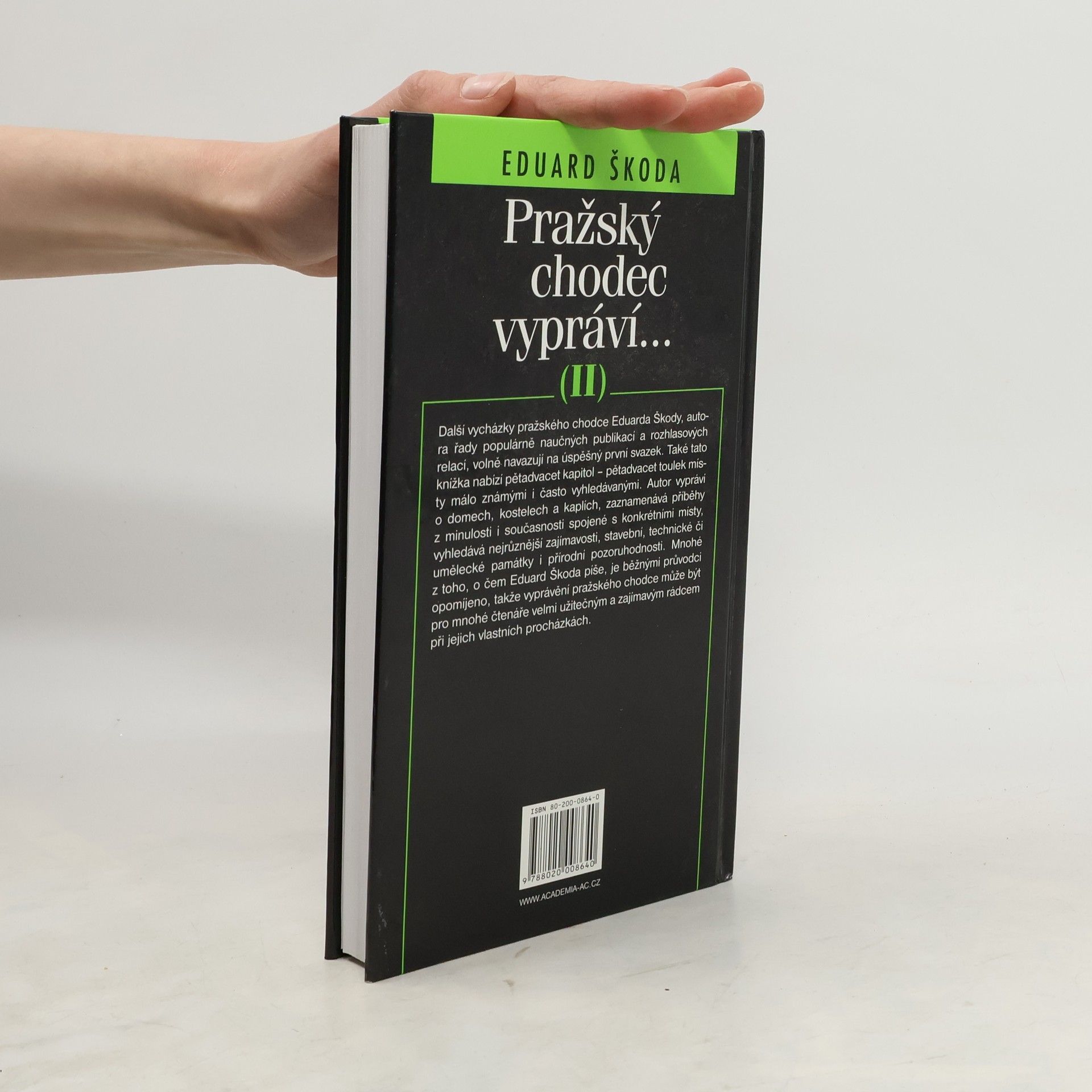 Druhý svazek ediční řady, která navazuje na autorovu populární rozhlasovou relaci. Obsahuje dalších pětadvacet procházek Prahou. Autor seznamuje čtenáře s řadou zajímavostí z historie i současnosti domů, kostelů a dalších staveb, s příběhy a lidskými osudy, které se váží k pomníkům či pamětním deskám, vedle turisticky atraktivních míst v historickém centru Prahy objevuje pro čtenáře také umělecké, historické či přírodní zajímavosti v okrajových pražských čtvrtích.