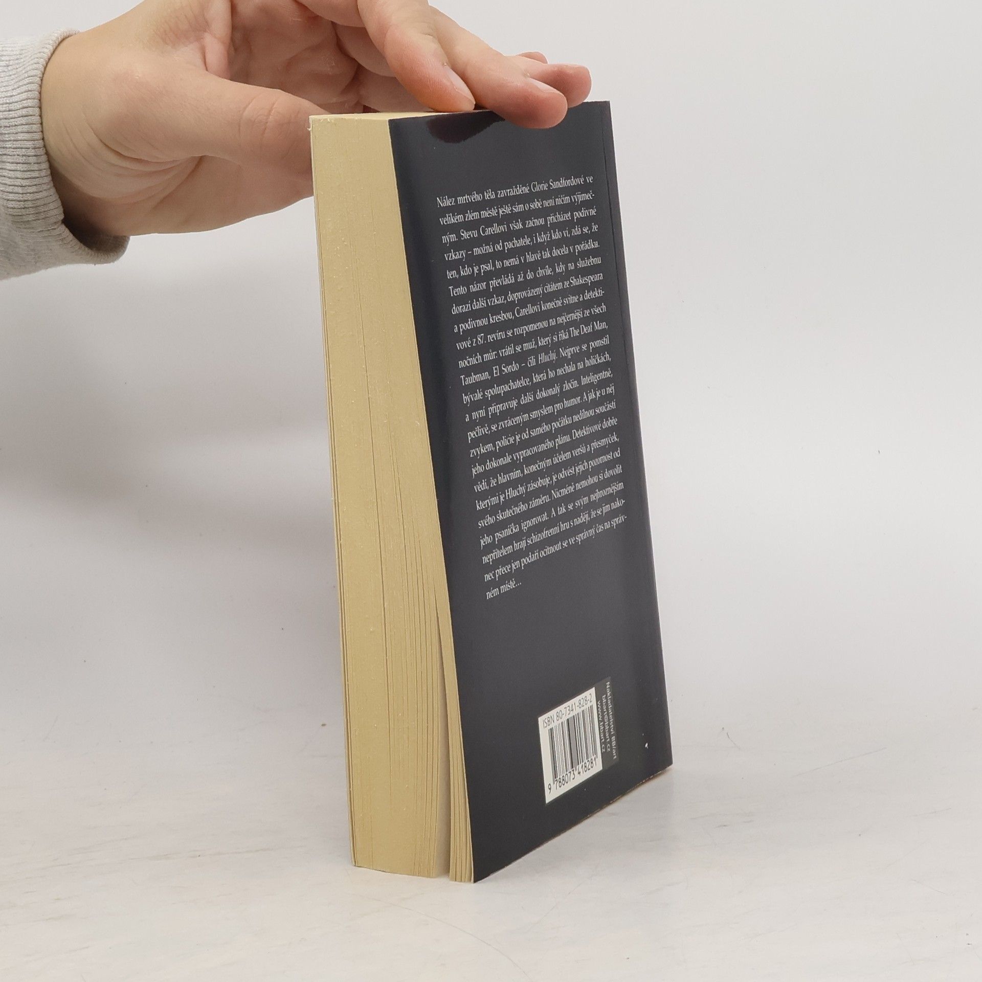 Nález mrtvého těla zavražděné Glorie Sandfordové ve velikém zlém městě ještě sám o sobě není ničím výjimečným. Stevu Carellovi však začnou přicházet podivné vzkazy – možná od pachatele, i když kdo ví, zdá se, že ten kdo je psal, to nemá v hlavě tak docela v pořádku. Tento názor převládá až do chvíle, kdy na služebnu dorazí další vzkaz, doprovázený citátem ze Shakespeara a podivnou kresbou, Carellovi konečně svitne a detektivové z 87. revíru se rozpomenou na nejčernější ze všech nočních můr: vrátil se muž, který si říká The Deaf Man, Taubman, El Sordo – čili Hluchý. Nejprve se pomstil bývalé spolupachatelce, která ho nechala na holičkách, a nyní připravuje další dokonalý zločin. Inteligentně, pečlivě, se zvráceným smyslem pro humor. A jak je u něj zvykem, policie je od samého počátku nedílnou součástí jeho dokonale vypracovaného plánu. Detektivové dobře vědí, že hlavním, konečným účelem veršů a přesmyček, kterými je Hluchý zásobuje, je odvést jejich pozornost od svého skutečného záměru. Nicméně nemohou si dovolit jeho psaníčka ignorovat. A tak se svým nejhroznějším nepřítelem hrají schizofrenní hru s nadějí, že se jim nakonec přece jen podaří ocitnout se ve správný čas na správném místě… První brožované vydání v českém jazyce.