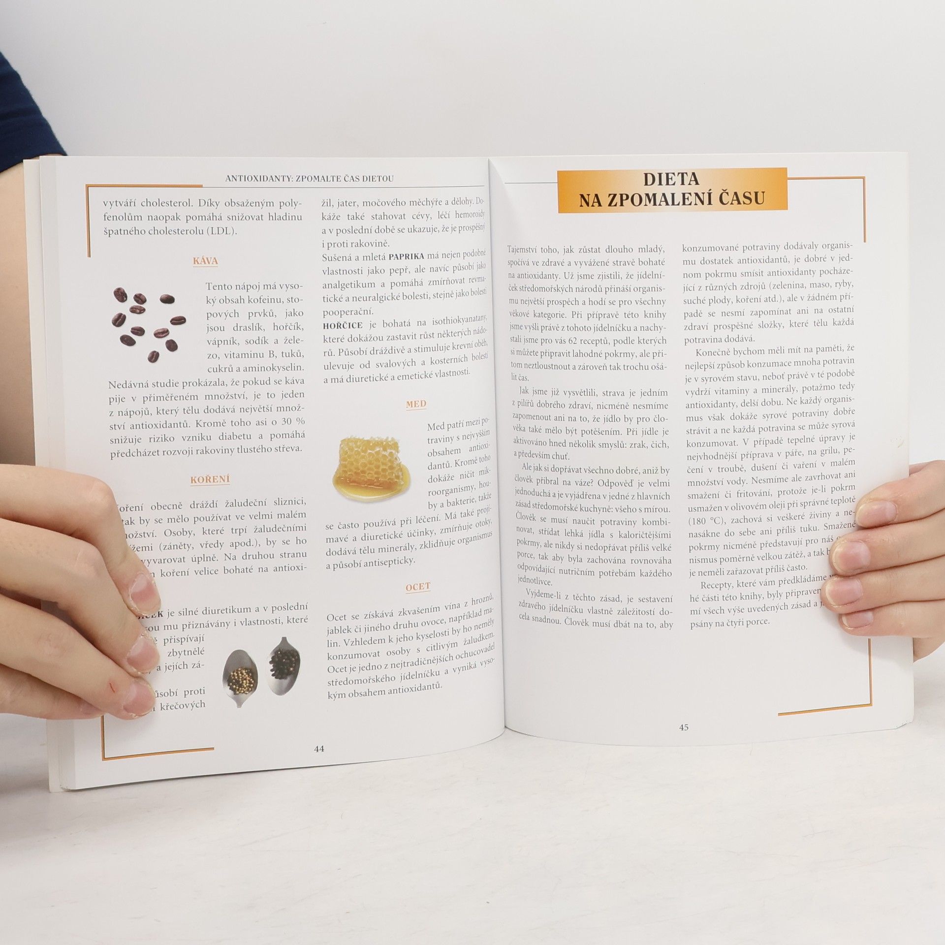 Vědci prokázali, že stárnutí buněk lidského těla je přímo ovlivněno volnými radikály, které neustále vznikají v lidském těle. Antioxidanty jsou přirozené obranné látky, sloužící k boji proti volným radikálům, a je možné je tělu dodávat prostřednictvím stravy. Zpomalení procesu stárnutí organismu tedy můžeme napomoci správnými stravovacími návyky. Z uvedených poznatků jsme vycházeli při výběru receptů pro tuto kuchařku. Najdete zde jídla zdravá, ale zároveň velice chutná, která vám pomohou zpomalit čas a obohatí váš jídelníček.