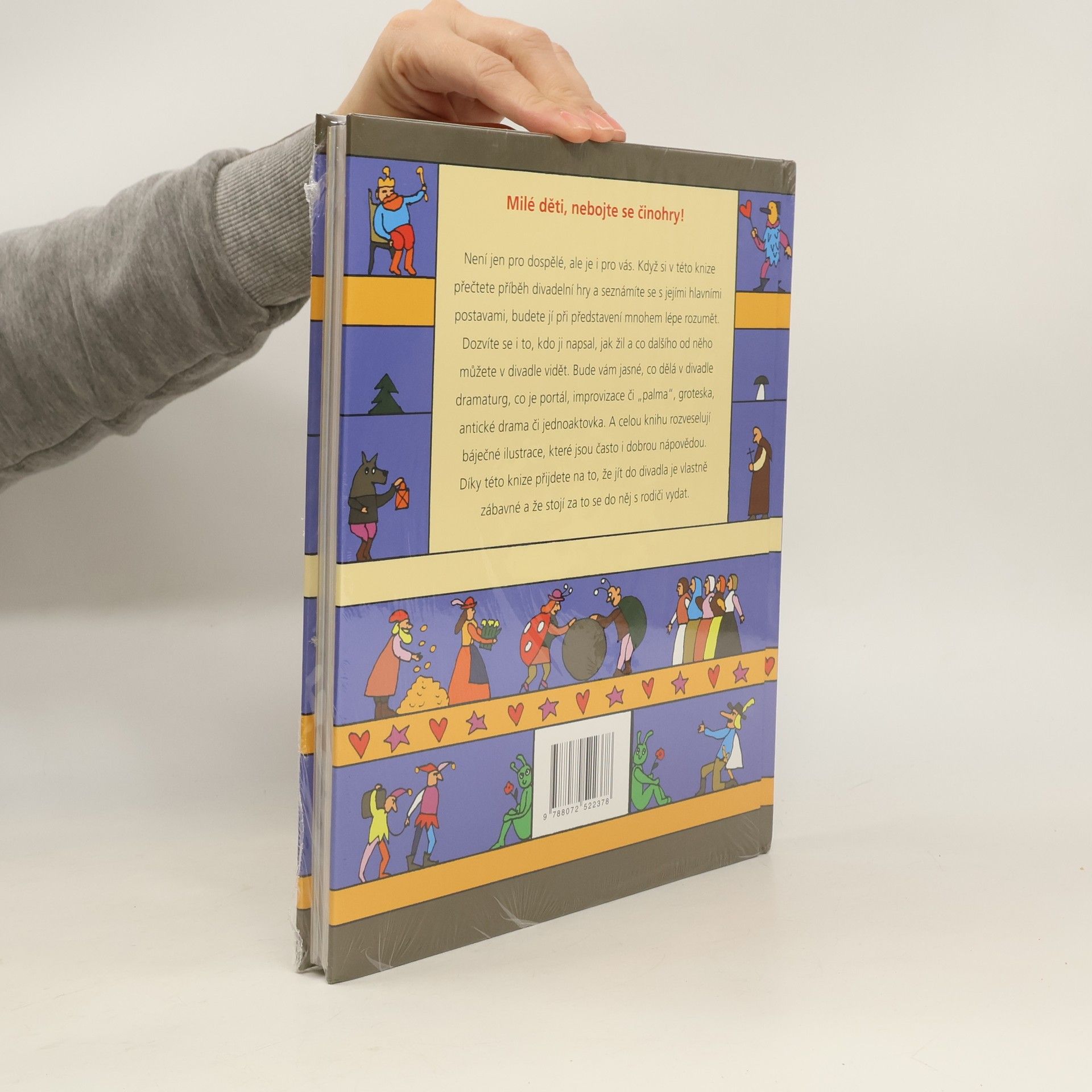 Kniha představuje 30 nejznámějších divadelních her, profily významných dramatiků a množství pojmů, vše přehledně a s bohatým výtvarným doprovodem. Obsahuje světovou dramatickou klasiku, jako je Cyrano de Bergerac od E. Rostanda, Faust od J. W. Goetheho, Hamlet, Romeo a Julie a Sen noci svatojánské od W. Shakespeara, Jak je důležité míti Filipa od O. Wildea, Lakomec od Moliera, antické hry Médea a Oidipús král, ruské Revizor a Tři sestry, české Strakonický dudák od J. K. Tyla a Naši furianti od L. Stroupežnického, americké Smrt obchodního cestujícího od A. Millera a Tramvaj do stanice touha od T. Willamse, a další. Hry jsou abecedně řazeny, jejich děj je rozdělen do jednotlivých dějství a popsán jasným jazykem. Kromě toho obsahuje zajímavé informace o dramatikovi a vysvětlení pojmů jako scénograf, dramaturg, komedie či improvizace. Děti se také dozvědí o významných divadelních festivalech a divadelních domech jako Comédie Française a Broadway. Kniha je doplněna výtvarným stylem Jiřího Votruby, oceňovaného v zahraničí. Je určena dětem od deseti let a jejich rodičům, ale má širší přesah a může sloužit i studentům ZŠ, ZUŠ a SŠ.