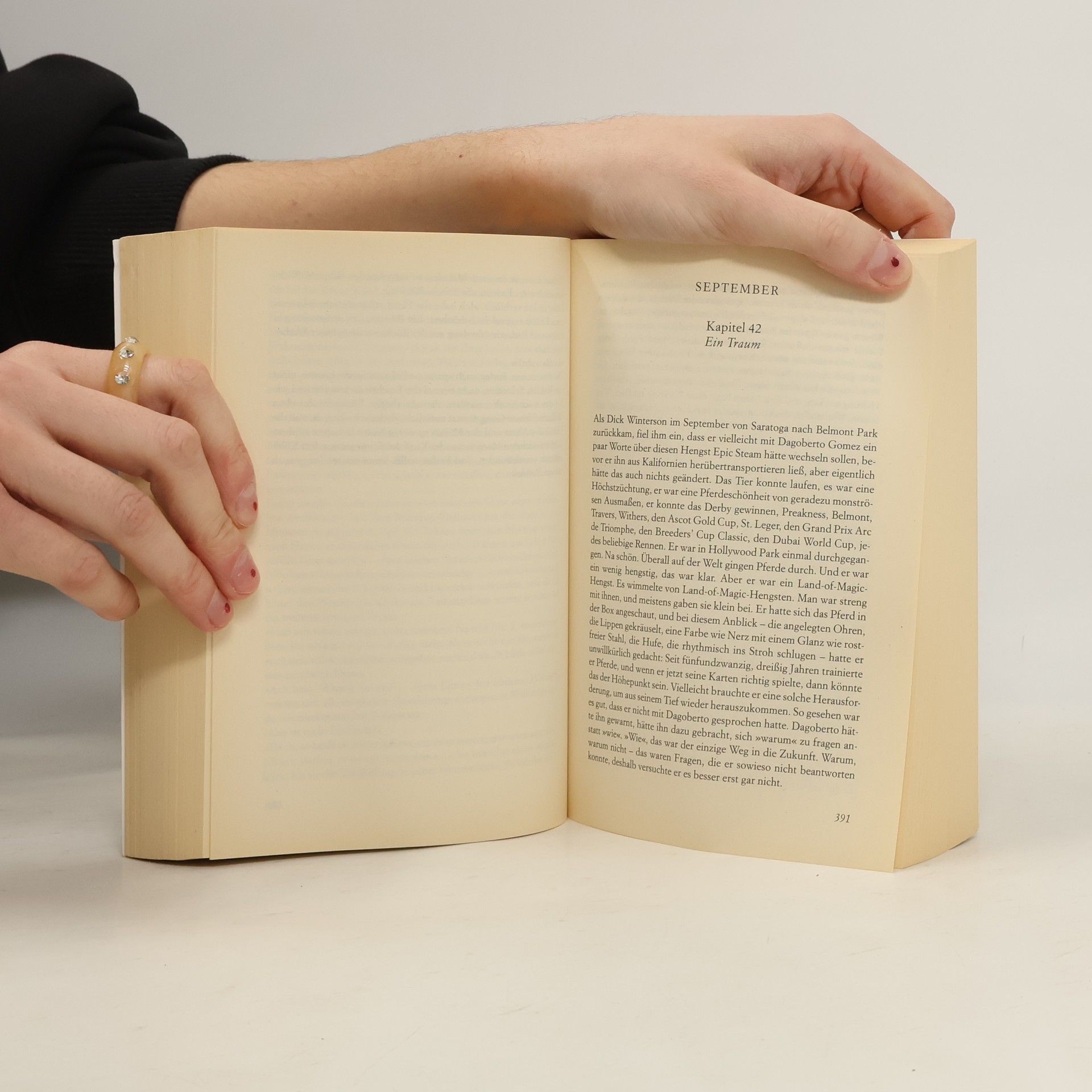 Vollblutpferde, Rennbahnen, Turnierpreise und der Glanz des Geldes - das ist die Welt, in der Rosalind Maybrick lebt. Ihrem Mann Al sind die Rennsiege seiner Pferde schon lange wichtiger als seine Frau. Aber auch Rosalind liebt die erregende Spannung der Rennbahn, die nervöse Schönheit der Vollblüter. Als sie dem Pferdetrainer Dick Winterson begegnet, ist es sein souveräner, sanfter Umgang mit den Tieren, der eine schicksalhafte Spannung zwischen ihnen entstehen lässt. Aber wie kann Rosalind ihrem Gefühl folgen, da sie doch alle unlösbar in die gleiche Welt verstrickt sind? Ein gewaltiges Gesellschaftspanorama entwirft Jane Smiley auf den Rennbahnen von Kalifornien bis Paris. Leidenschaftlich und idealistisch, aber auch korrupt und kaltherzig sind die Menschen, denen Pferde das Leben bedeuten. Vom jungen Roberto mit dem perfekten Renninstinkt, reitbessenen Teenagern, von Millionären, Spielern und fanatischen Jockeys bis zu den hinreißend geschilderten Rennpferden selbst entfaltet si ch die glamouröse Welt aus Sehnsucht und Liebe, Ehrgeiz und Hass, die den Leser bis zum Ende in Atem hält.