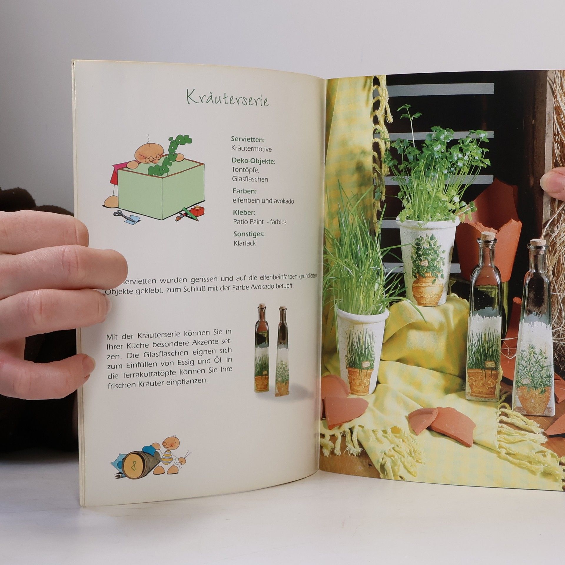 Töpfe, Flaschen, Bilderrahmen, Dosen, Kinderzimmermöbel und vieles mehr, werden mit der einfachen Serviettentechnik neu gestaltet.