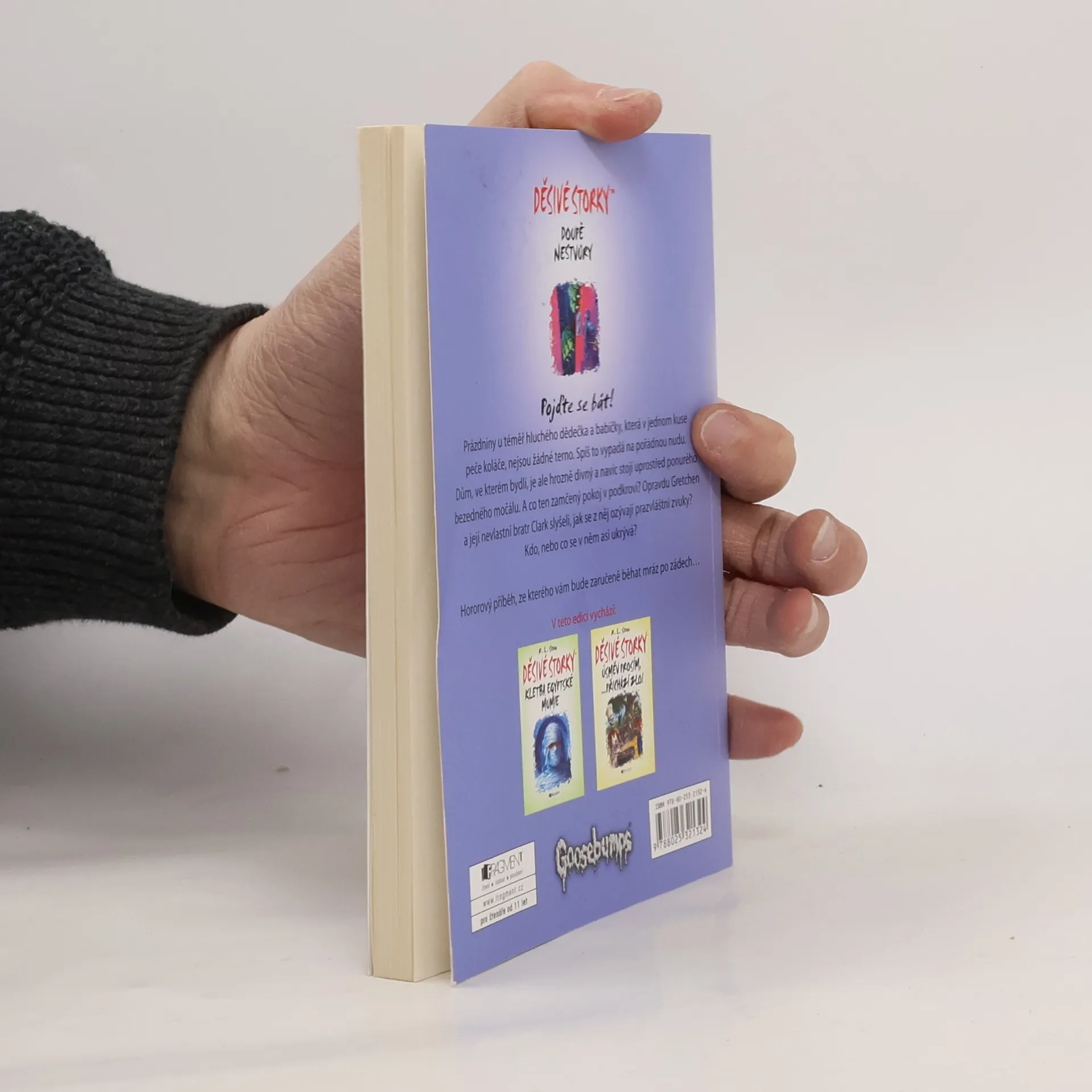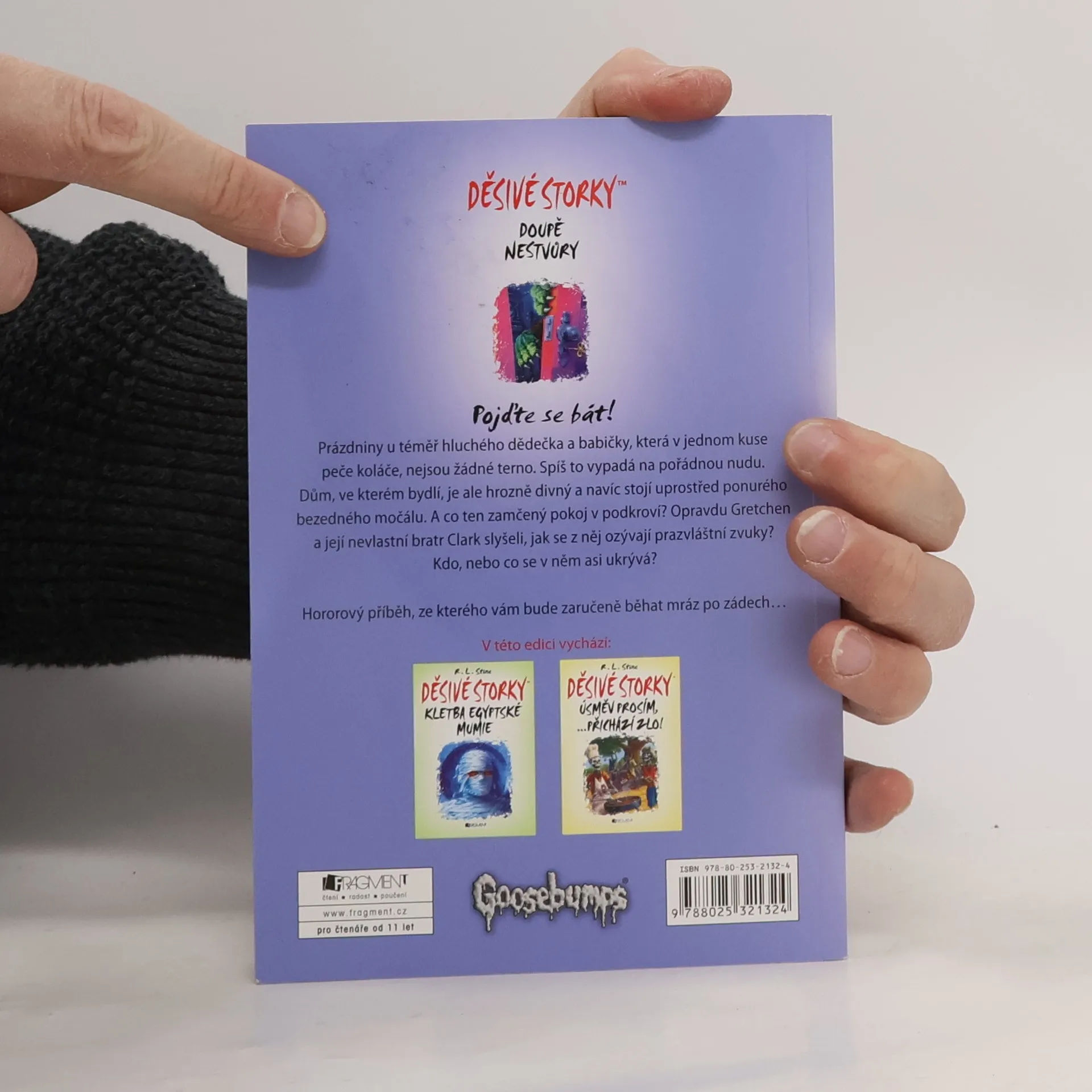 Pojďte se bát! Prázdniny u téměř hluchého dědečka a babičky, která v jednom kuse peče koláče, nejsou žádné terno. Spíš to vypadá na pořádnou nudu. Dům, ve kterém bydlí, je ale hrozně divný a navíc stojí uprostřed ponurého bezedného močálu. A co ten zamčený pokoj v podkroví? Opravdu Gretchen a její nevlastní bratr Clark slyšeli, jak se z něj ozývají prazvláštní zvuky? Kdo, nebo co se v něm asi ukrývá?