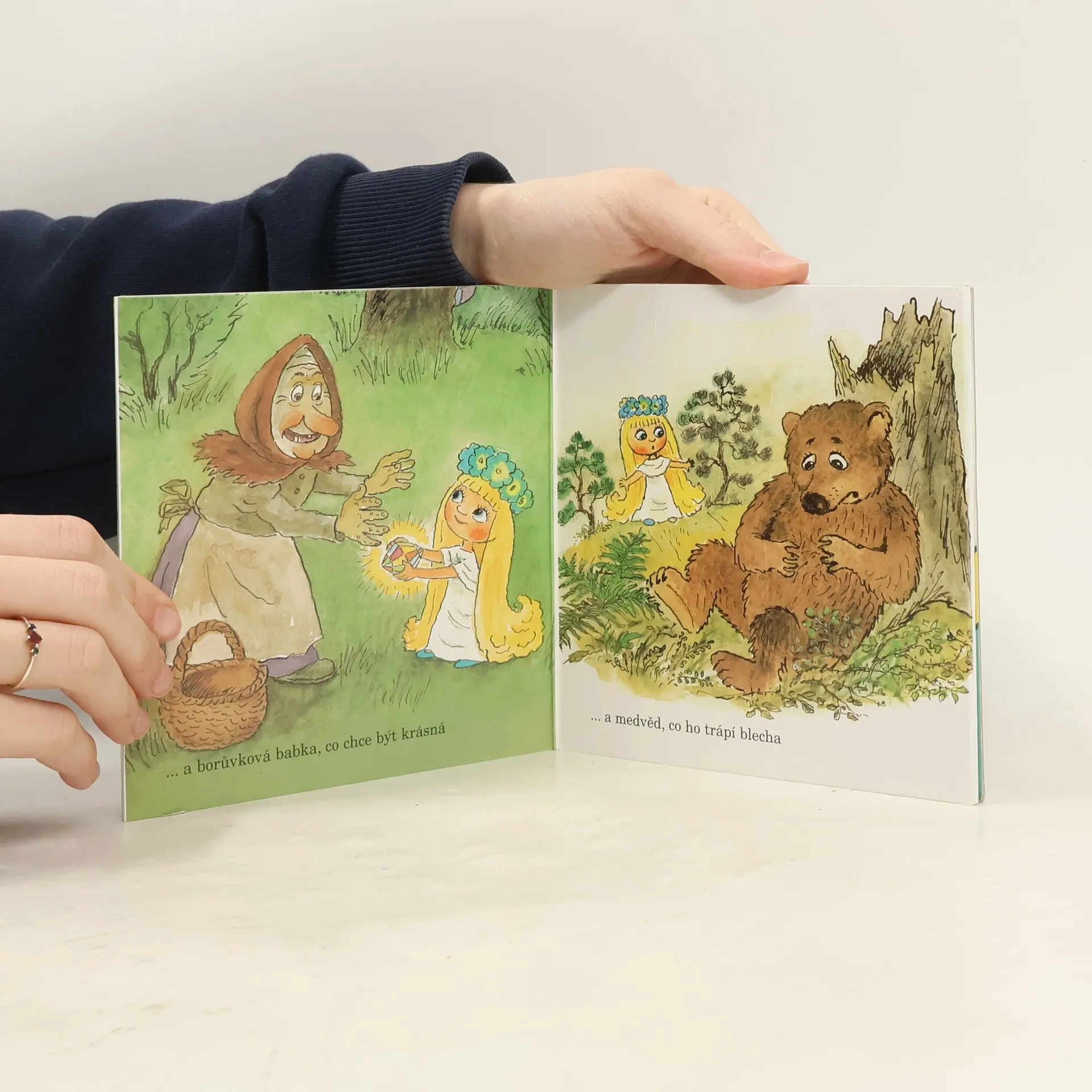 V rozkládacím leporelu děti najdou obrázky oblíbených postaviček z televizního vešerníčku, který vznikl podle knížky Václava Čtvrtka Říkání o víle Amálce. Víla Amálka se tu setká s myslivcem Muškou, který má zálusk na srnečka, dědky Fujaváky, kteří přinášejí zimu, obrem Hrompacem, co si chce vzít vílu za ženu, panáčkem, který vyskočil z oříšku, zabloudivším beránkem Kudrnou, babkou, co touží po kráse, medvědem, co ho trápí blecha a dalšími. Děti si mohou podle obrázků samy hezky vyprávět.