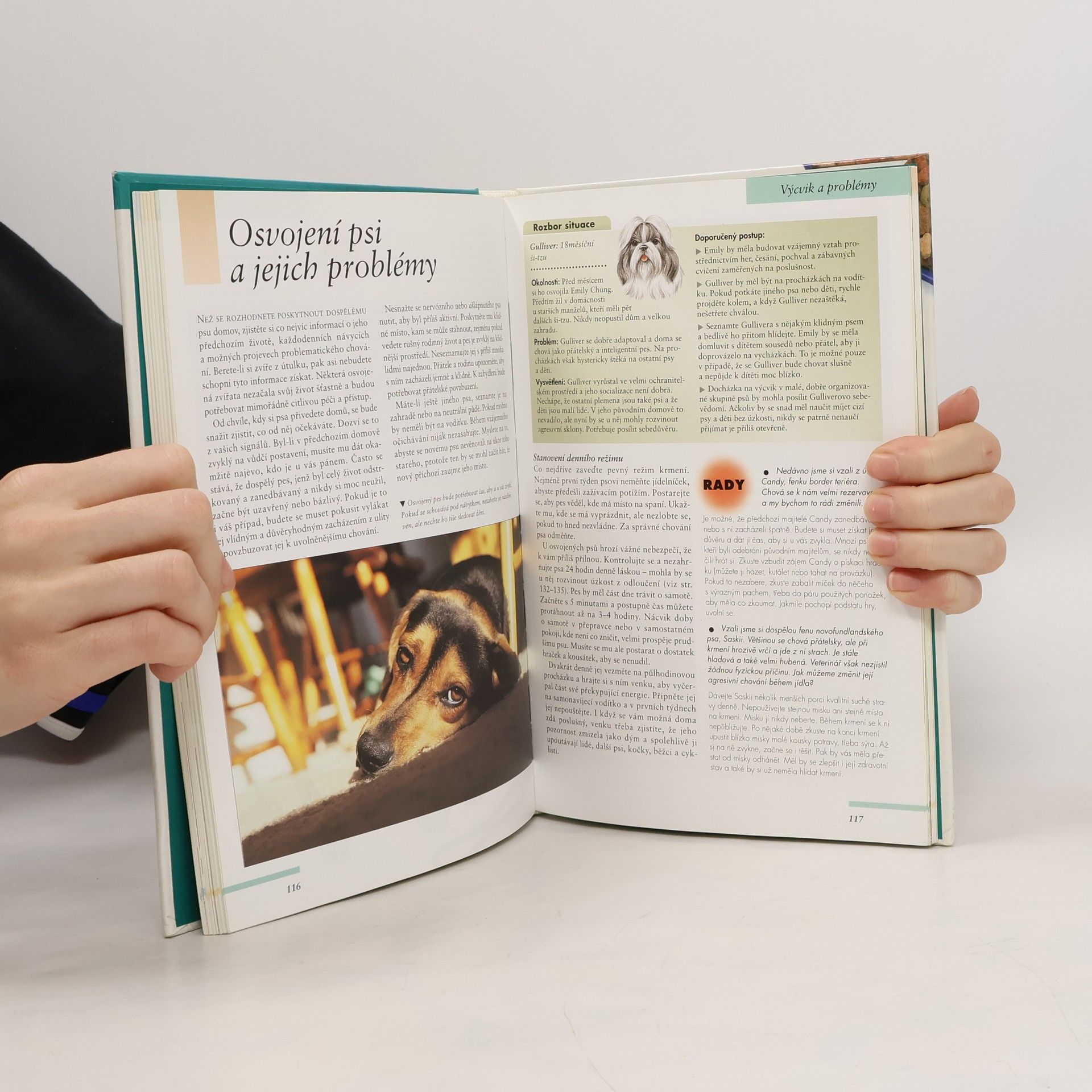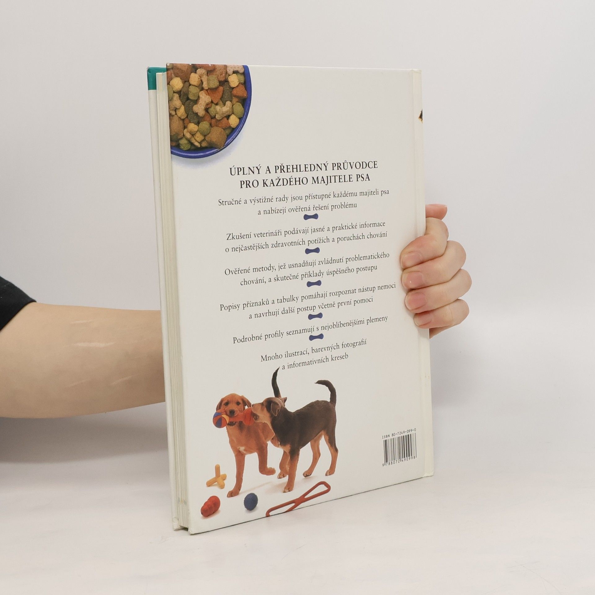 Stručné a jasné rady přístupné všem chovatelům, informace o nejčastějších zdravotních potížích a poruchách chování, první pomoc zvířeti, podrobné profily nejoblíbenějších plemen. Text doprovázen řadou ilustrací, barevných fotografií a informativních kreseb.