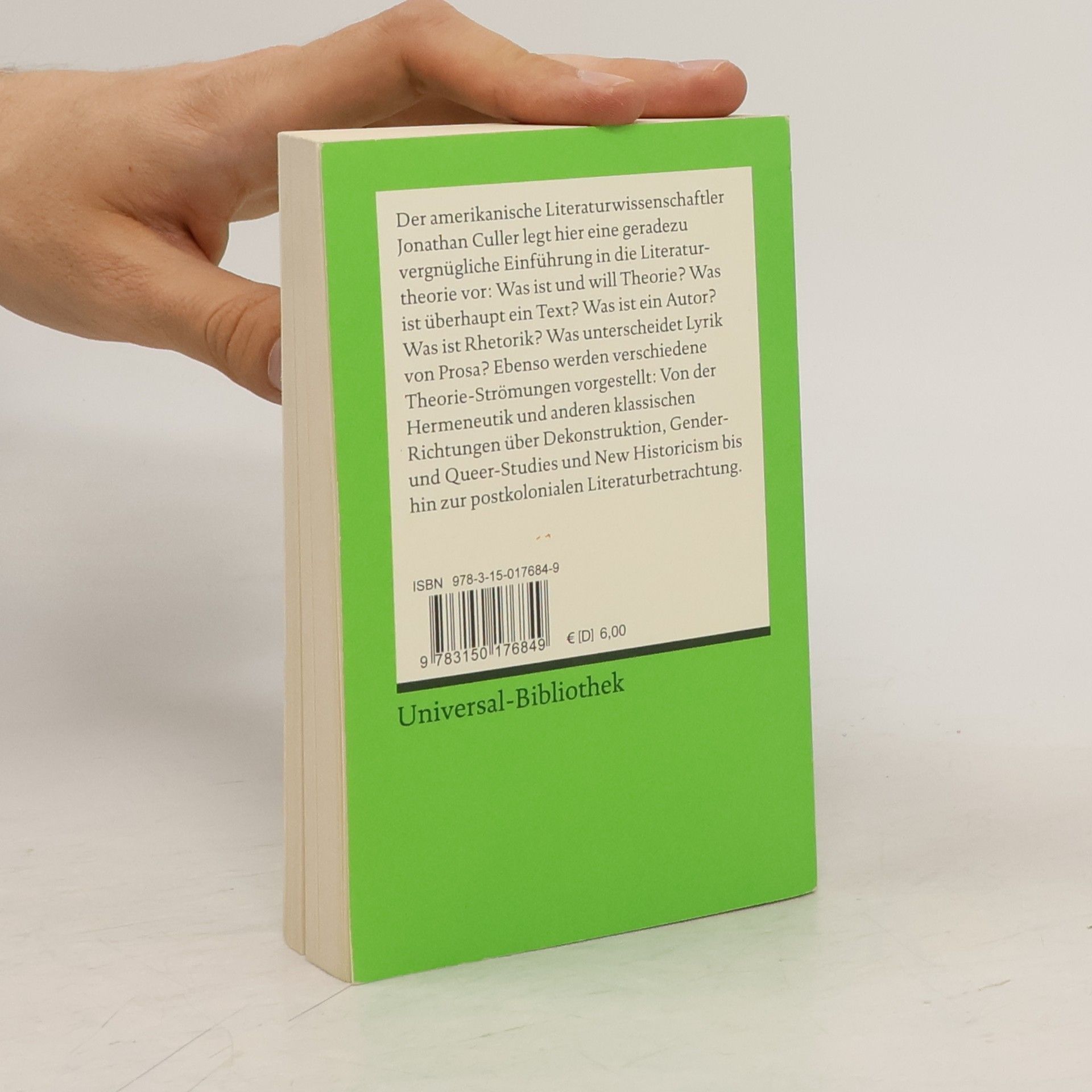 Der amerikanische Literaturwissenschaftler Jonathan Culler legt hier eine geradezu vergnügliche Einführung in die Literaturtheorie vor: Was ist und will Theorie? Was ist überhaupt ein Text? Was ist ein Autor? Was ist Rhetorik? Was unterscheidet Lyrik von Prosa? Ebenso werden verschiedene Theorie-Strömungen vorgestellt: Von der Hermeneutik und anderen klassischen Richtungen über Dekonstruktion, Gender- und Queer-Studies und New Historicism bis hin zur postkolonialen Literaturbetrachtung.