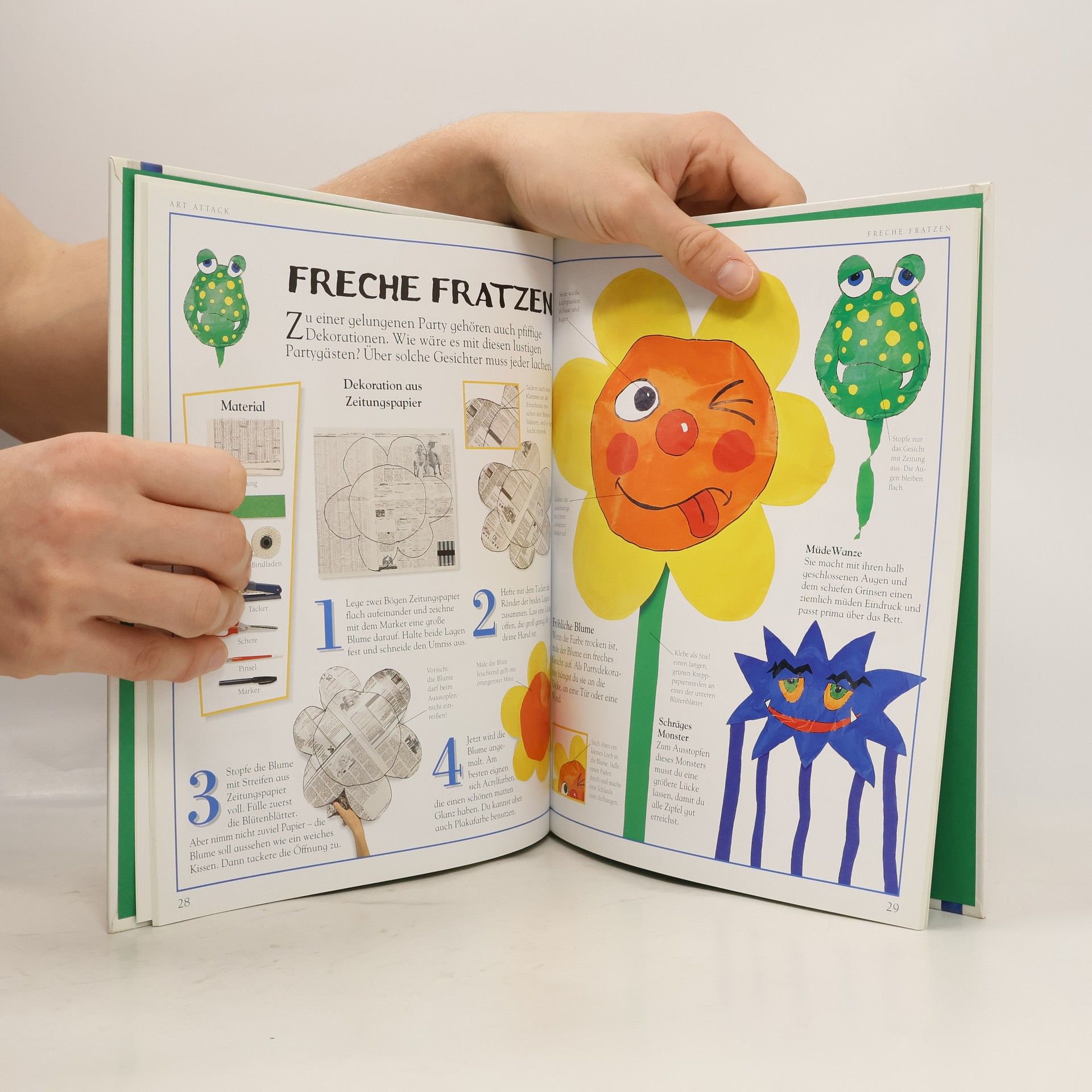 Von „Art Attack“ kann man nie genug bekommen! Das neue Buch ist bis zum Rand gespickt voll mit neuen tollen Ideen zum Basteln. Diesmal entstehen aus den einfachsten Materialien lustige Masken, flippige Kleiderbügel, witzige Eierbecher, gruselige Müllmonster und vieles mehr. Materialien, die sonst im Müll landen würden, werden hier zu Kunstwerken verarbeitet: von alten Klorollen und Zeitungen, über Plastiktüten bis hin zu Farbresten - hier kann alles verwendet werden. Verblüffend, was sich daraus alles zaubern lässt! Außergewöhnliche Bastel-Ideen, an denen jedes Kind seine Freude haben wird! Ab 5 Jahren