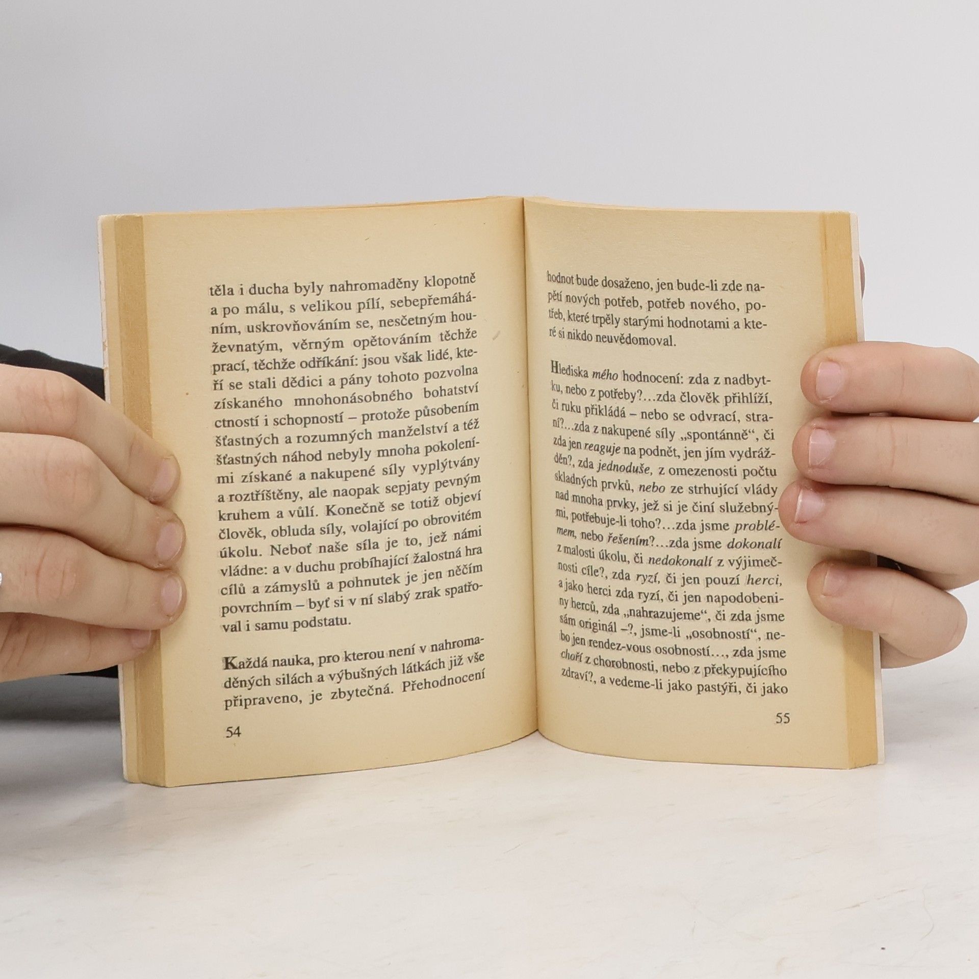 Výbor aforismů o životě a umění předkládá průřez téměř veškerou ústřední problematikou Nietzscheho filozofie. Na obálce použit obraz Petera Bömmelse Sprung aus der Geschichte.