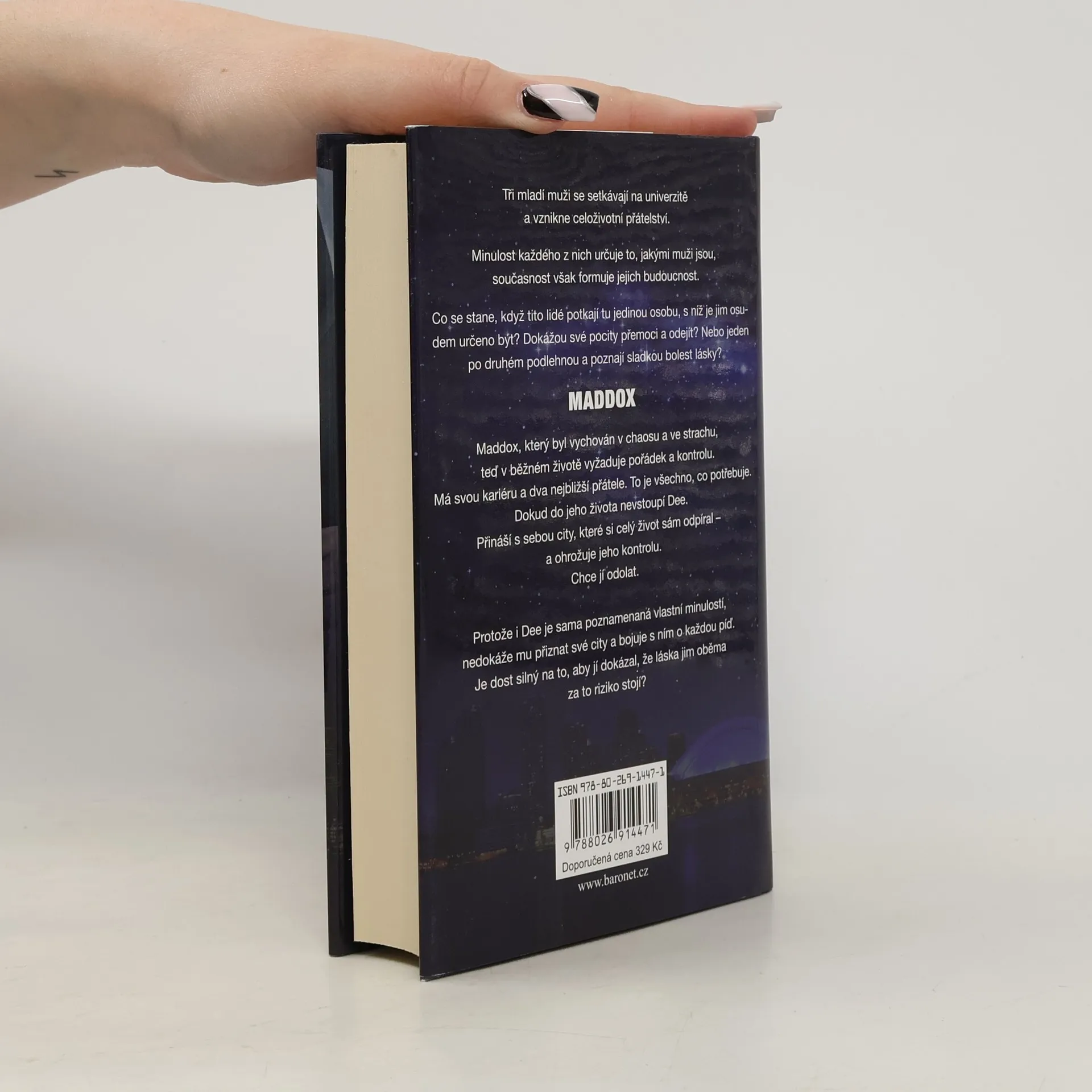 Tři mladí muži se seznámí na univerzitě, kde také začne jejich celoživotní přátelství. Minulost diktuje to, jací muži to jsou, současnost však formuje jejich budoucnost. Co se stane, když se každý z těchto mužů setká s tou jedinou osobu, která je mu předurčena? Dokážou se svými city bojovat a odejít? Nebo jeden po druhém podlehnou a poznají sladkou bolest lásky? Maddox, který byl vychován v chaosu a ve strachu, teď v běžném životě vyžaduje pořádek a kontrolu. Má svou kariéru a dva nejbližší přátele. To je všechno, co potřebuje. Dokud do jeho života nevstoupí Dee. Přináší s sebou city, které si celý život sám odpíral – a ohrožuje jeho kontrolu. Chce jí odolat. Udržet. Lásku. Naživu. Protože i Dee sama je poznamenána vlastní minulostí, nedokáže mu přiznat své city, a bojuje s ním o každou píď. Je dost silný na to, aby jí ukázal – aby jí dokázal, že láska jim oběma za to riziko stojí?
