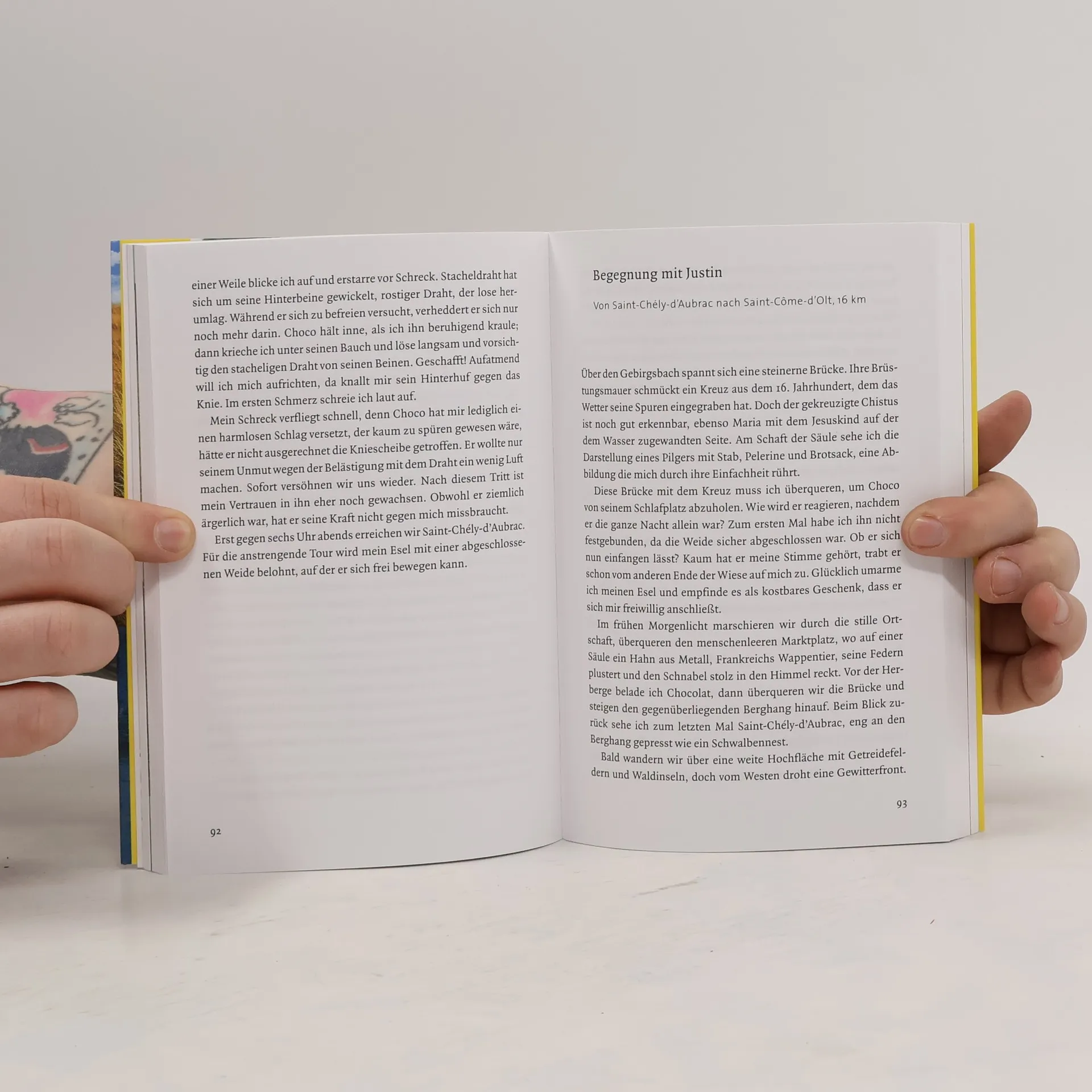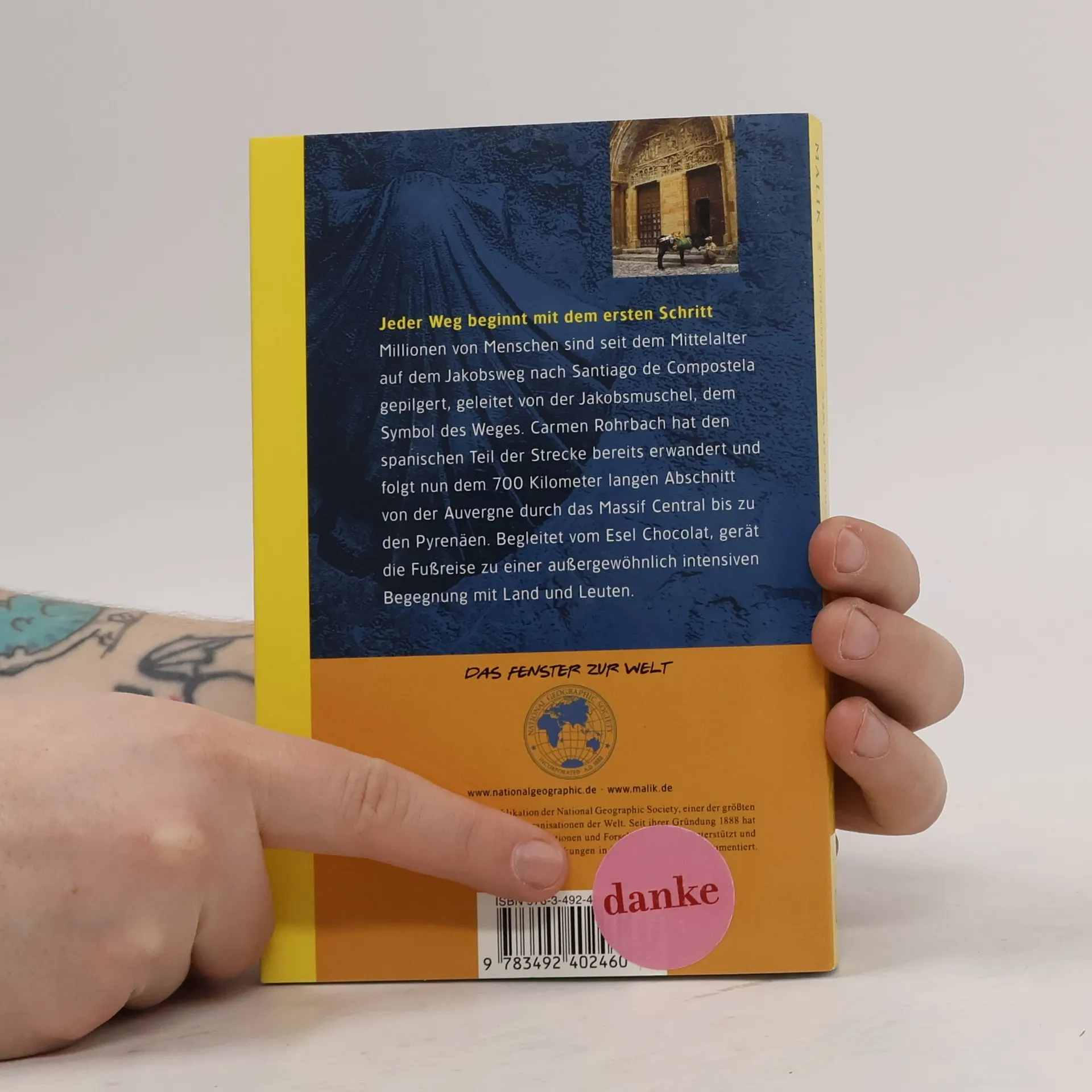 Millionen von Menschen sind seit dem Mittelalter auf dem Jakobsweg nach Santiago de Compostela gepilgert, geleitet von der Jakobsmuschel, dem Symbol des Weges. Carmen Rohrbach hat den spanischen Teil der Strecke bereits erwandert und folgt nun dem 700 Kilometer langen Abschnitt von der Auvergne durch das Massif Central bis zu den Pyrenäen. Begleitet vom Esel Chocolat, gerät die Fußreise zu einer außergewöhnlich intensiven Begegnung mit Land und Leuten.