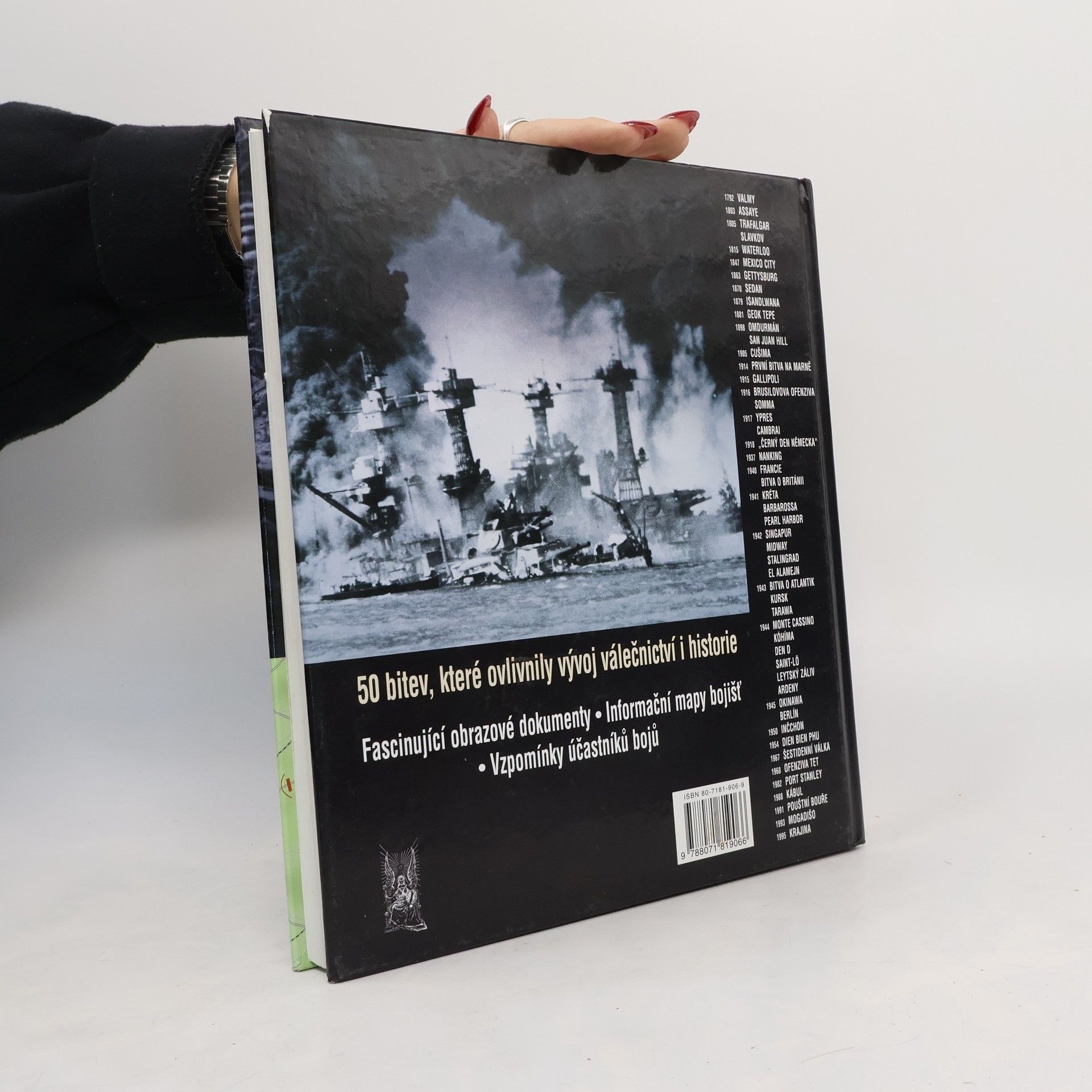 Přehled bojových střetnutí, která změnila historii Kniha popisuje padesát bitev, které ovlivnily vývoj válečnictví i historie, od bitvy u Valmy v roce 1792 po války na sklonku 20. století. Přináší fascinující obrazové dokumenty, informační mapy bojišť i vzpomínky účastníků bojů.