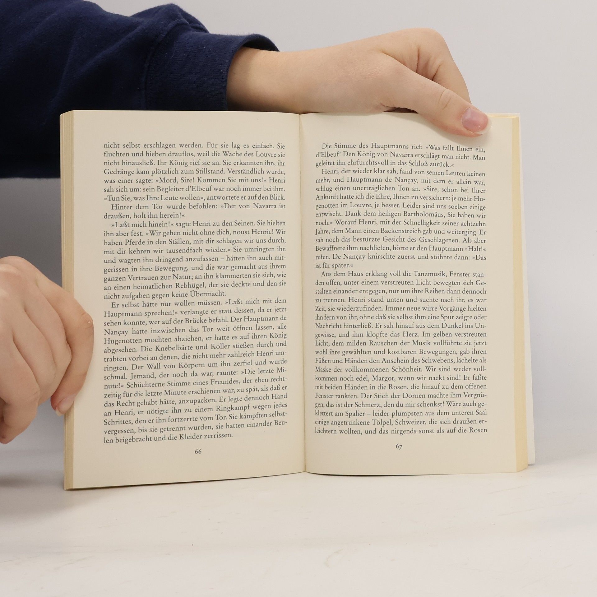 Die Nacht zum 24. August 1572 war eine Nacht des Terrors. Katharina von Medici ließ in Paris 2000 Hugenotten ermorden, in den folgenden Wochen wurden weitere 20.000 umgebracht. Heinrich Mann beschreibt in seinem historischen Roman, den er Mitte der 30er Jahre des vergangenen Jahrhunderts verfasst hat, das korrupte, von Intrigen und Machtkämpfen beherrschte Hofleben: Anspielungen auf die Gegenwart Heinrich Manns, auf das nationalsozialistische Terrorregime sind deutlich erkennbar. „Margot“, ein Kapitel aus der Lebensgeschichte des Königs Henri IV., ist ein Aufruf zur Menschlichkeit, die dem Terror gegenübergestellt wird. Heinrich Mann wollte in einer Zeit des Krieges und des Exils, „dass Deutsch und Französisch sich dies eine Mal durchdrängen. Davon erhoffte ich immer das beste für die Welt.“