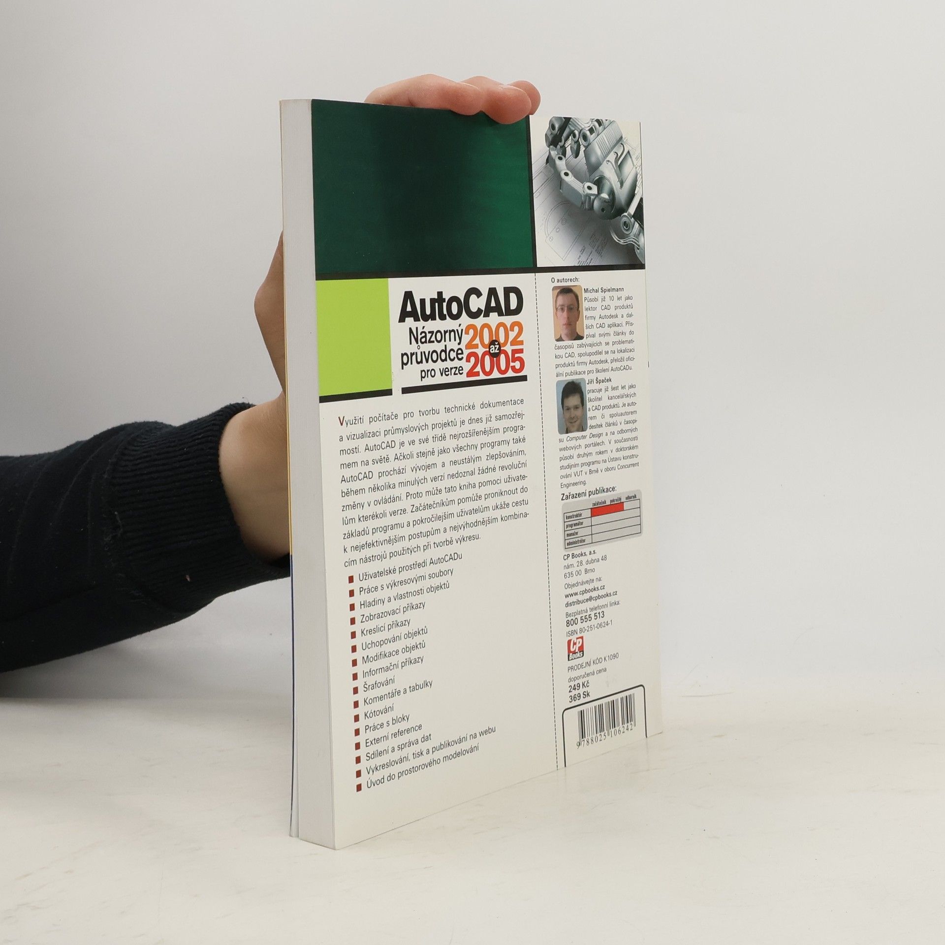 AutoCAD je nejrozšířenějším programem na světě ve své třídě. Ačkoli stejně jako všechny programy také AutoCAD prochází vývojem a neustálým zlepšováním, několik minulých verzí nedoznal žádné revoluční změny v ovládání. Proto může tato kniha pomoci uživatelům kterékoli verze. Začátečníkům pomůže proniknout do základů programu a pokročilejším uživatelům ukáže cestu k nejefektivnějším postupům a nejvýhodnějším kombinacím nástrojů použitých při tvorbě výkresu.