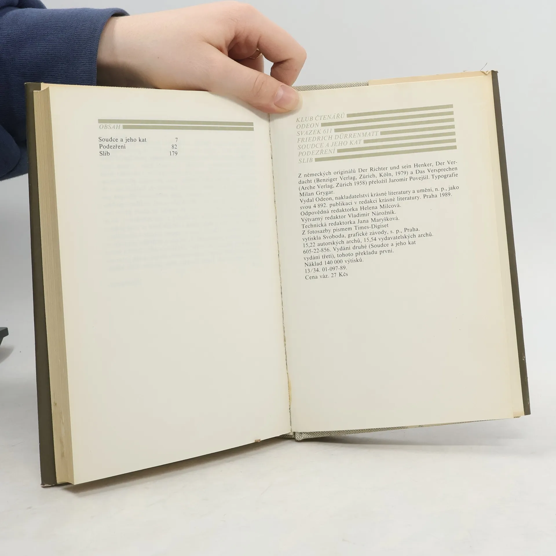V tomto vydání vycházejí tři Dürrenmattovy romány :Soudce a jeho kat ( Der Richter und sein Henker ), Podezření (Der Verdacht) a Slib (Das Versprechen) v překladu Jaromíra Povejšila. Dürrenmatt ve všech třech románech výrazně překročil rámec detektivky a spíše se věnoval svým postavám, jejich motivům a filozofii jejich konání a nezapřel svou pověst světového dramatika – rozvíjí před námi napínavá kriminální dramata s hlubokým filozofickým podtextem. O jejich kvalitě svědčí mimo jiné i skutečnost, že podle námětů dvou z nich vznikly neméně úspěšné filmy.