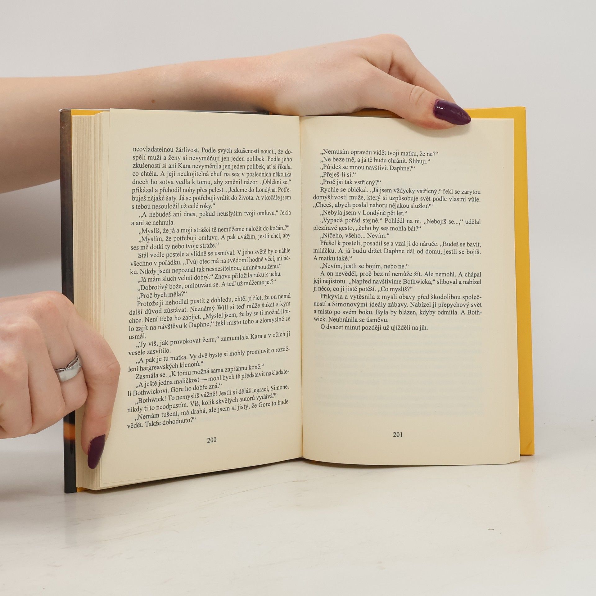 Ve sněhové vánici se kočár Karoliny Morrowové zastavil v hostinci na okraji malé vesnice. Neočekávané zdržení ženu spíš potěšilo, než rozladilo, a s radostí se hřála v teple u praskajícího krbu - než však uslyšela hlas, při němž ji zamrazilo v celém těle. Z temnoty se vynořil lord Simon Blair, stále hezký a mocný muž. Během okamžiku se vynořily vzpomínky na jejich dávný vášnivý milostný vztah, přestože tehdy skončil nešťastně - jeho nevěrou a jejím útěkem do manželství. Karolina, rozvedená a na mizině, nemůže před bývalým milencem utajit svou tísnivou situaci - ani vzrušení, které pociťuje, když slyší jeho vábivý hlas. Večer strávený u karet končí nocí v posteli a pak následují dny plné mučivých slastí. Ale Karolina je rozhodnuta uniknout. Vymaní se z objetí Simonových paží a odjíždí k novému zaměstnavateli, kde začíná pracovat jako guvernantka. Brzy se dovídá, že Simon ji jen tak nenechá, a zakrátko začíná nový boj...