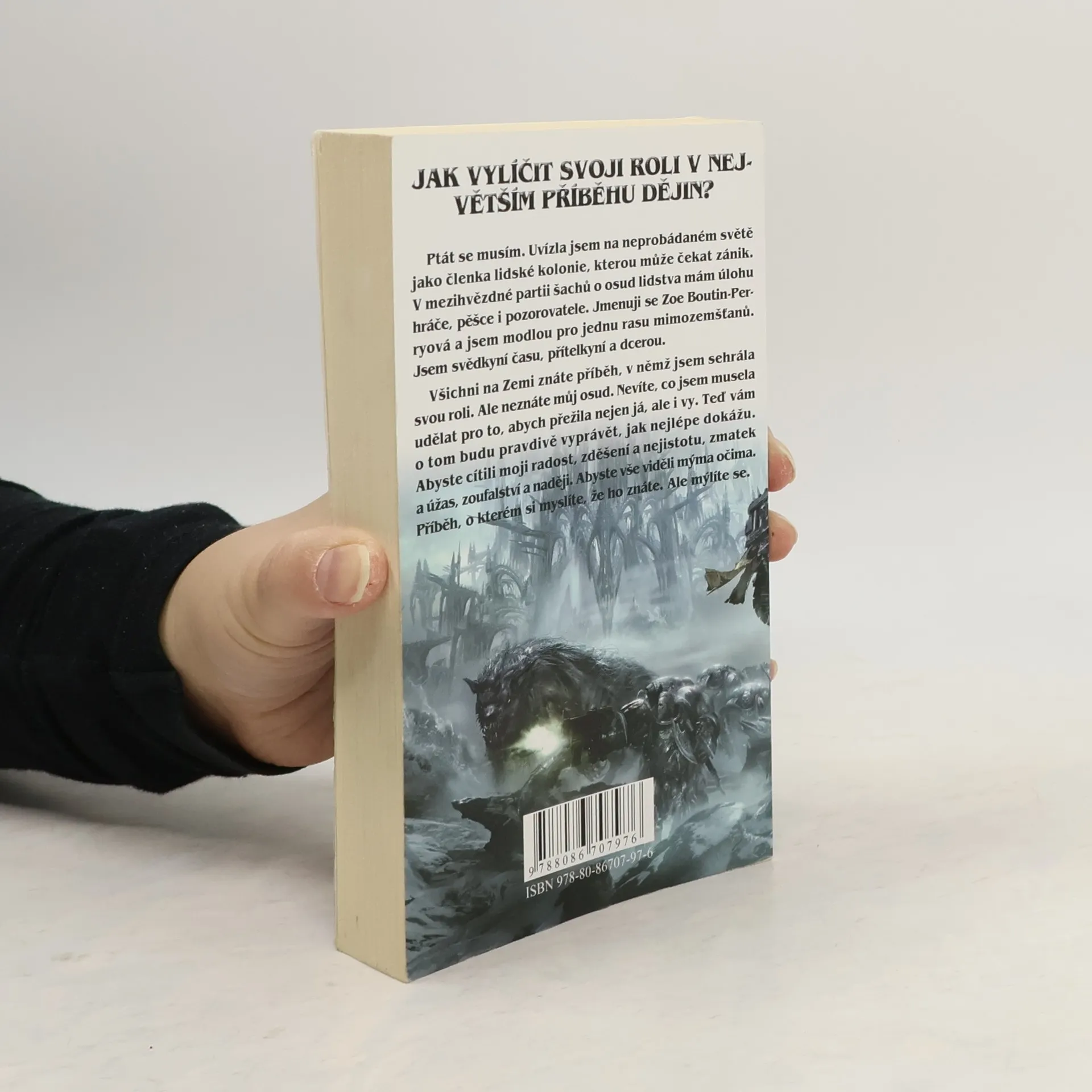 Jak vylíčit roli, kterou jste sehráli v největším příběhu dějin? Ptám se, protože musím. Jmenuji se Zoe Boutin-Perryová. Jsem kolonistka uvízlá na neprobádaném, smrtícím světě. Modla pro rasu mimozemšťanů. Hráč a pěšec v mezihvězdné partii šachů o záchranu lidstva nebo případný pozorovatel jeho pádu. Svědek historie. Přítel. Dcera. Člověk. Každý na Zemi zná příběh, jehož jsem součástí. Ale neznáte můj osud: jak jsem odehrála svou část -jak jsem udělala to, co jsem musela - nejen abych přežila, ale také abych udržela naživu vás. Teď se o tom chystám vyprávět, o všem, jediným způsobem, jaký znám: pravdivě, abyste pocítili to, co cítím já; radost, zděšení a nejistotu, zmatek a úžas, zoufalství a naději. Všechno z mého pohledu. Příběh, o kterém si myslíte, že ho znáte. Ale mýlíte se...