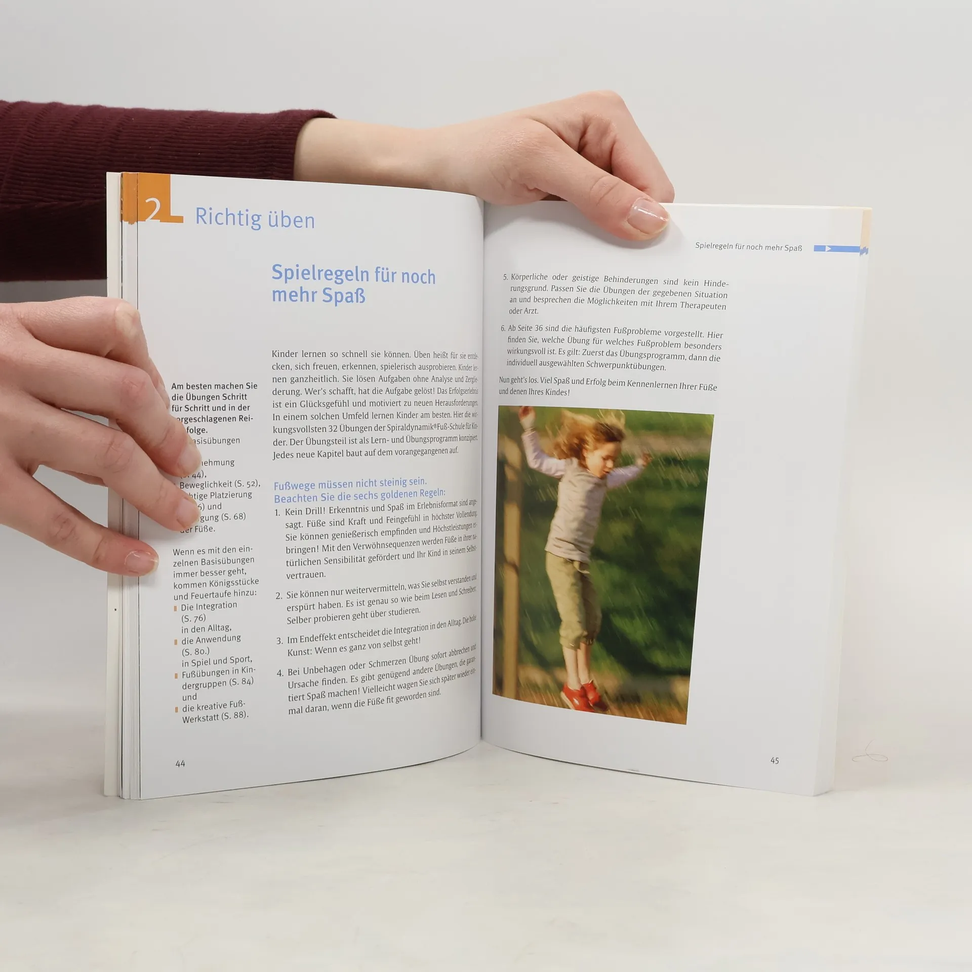 Kleine Füße - starke Leistung 98 Prozent aller Kinder kommen mit gesunden Füßen auf die Welt, aber 60 Prozent aller Erwachsenen haben Fußschäden. Rund zwei Drittel aller Kinder tragen zu kleine Schuhe... Sie können von Anfang an viel dafür tun, damit Ihr Kind sicheren Schrittes die Welt erkunden kann. Immerhin legen wir im Laufe unseres Lebens eine gewaltige Strecke zu Fuß zurück - und zwar einmal um die ganze Erde. - Kinderschuhe kaufen: Wie Sie richtig messen, worauf es wirklich ankommt und wann Einlagen sinnvoll sind. - Fehlstellungen erkennen: Die Anatomie des Kinderfußes leicht verstehen. - Üben mit Spiel und Spaß: Die 32 besten Übungen aus der Spiraldynamik® Fußschule von „Turmspringer“ bis „Fuß-Picasso“ sind einfach durchzuführen, eignen sich für drinnen und draußen, sind leicht zu merken und machen richtig starke Füße. Und übrigens: Elternfüßen tut das Mitmachen richtig gut!