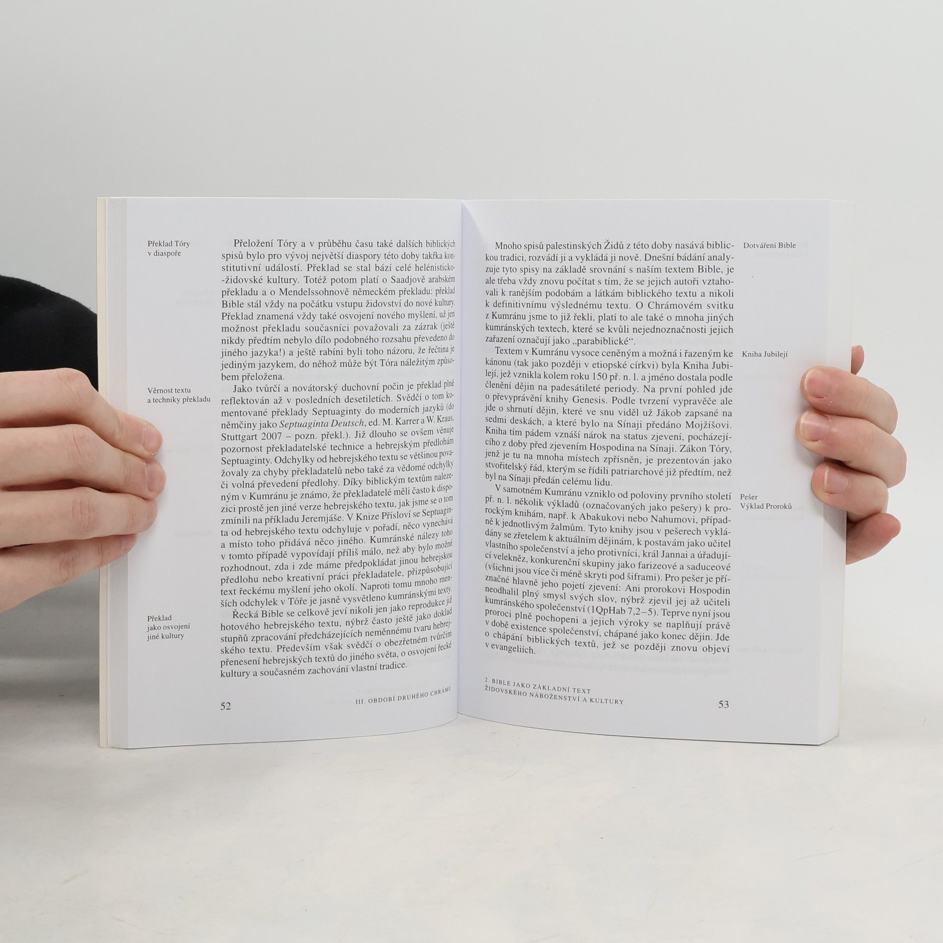 Ucelená propedeutická příručka zaměřená na studium židovského náboženství, jeho dějin a literatury. Nabízí názorný a jasně uspořádaný základní přehled o oboru, umožňující začátečníkům rychlé proniknutí do disciplíny a pokročilým opakování látky. G. Stemberger, profesor judaistického ústavu vídeňské univerzity, popisuje historické předstupně judaistiky jako vědního oboru, hlavně od počátku 19. století a tzv. „vědy o židovství“, a představuje stěžejní otázky, texty a metody soudobého studia judaistiky. Hlavní části knihy věnuje čtyřem epochám židovských dějin a kultury: době druhého Chrámu (400 př. n. l. – 70 po n. l.), období klasického rabínství s centry v Palestině a Babylonii (do 10. století), středověku s těžištěm v Evropě a novověku. Autor přitom nejprve vymezuje rozsah a charakter epochy a pak referuje o jednotlivých náboženských proudech a jejich literatuře. Publikace je cenná orientací na současný stav oboru: velkou pozornost věnuje stále otevřeným otázkám, nabízí přehledy důležitých adres (možnosti studia, instituce, knihovny), odkazy pro internetové rešerše, glosář, rejstřík a seznam nejdůležitější nové literatury k jednotlivým oddílům, od níž je možné proniknout ke staršímu bádání a k edicím a překladům textů. České vydání není pouhým překladem, ale navíc ukazuje aktuální stav a možnosti studia oboru v České republice.
