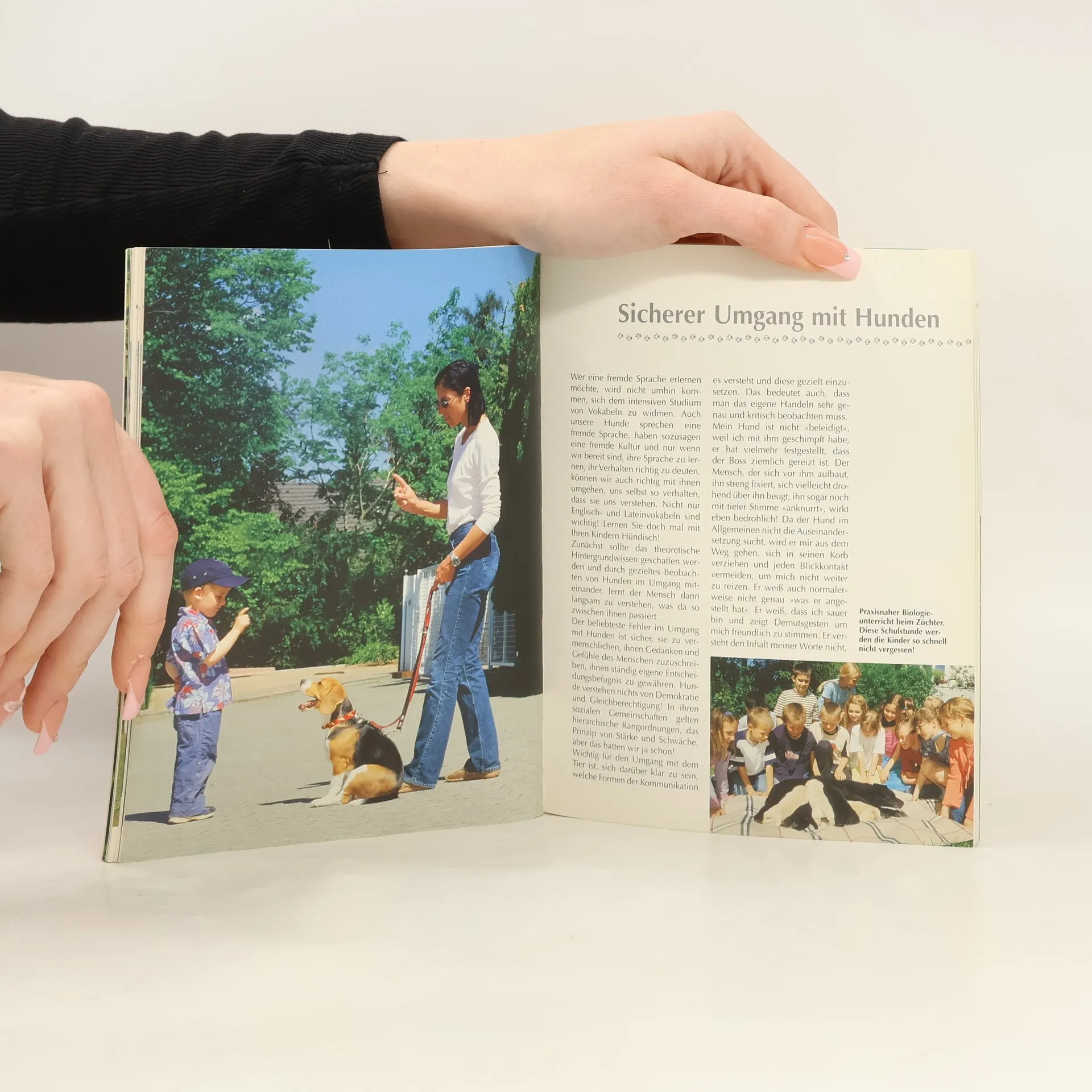 Basiswissen über Verhalten, Körpersprache und Kommunikation des Hundes sowie Tipps für den sicheren Umgang, Problemsituationen im Alltag und Erziehung, Spiel und Spass.