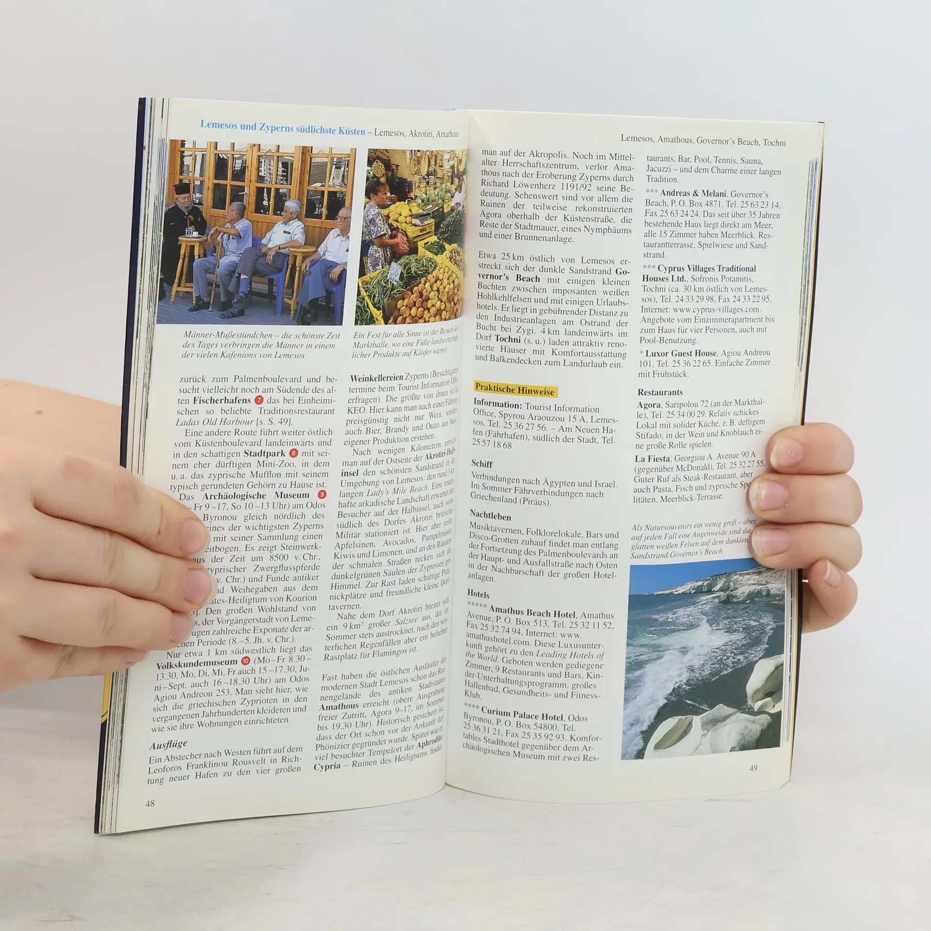 Zypern - Die sagenumwobene Insel der Aphrodite mit ihren langen und feinsandigen Stränden ist gleichermaßen modernes Urlaubsparadies und Traumbild der Antike. Beides verbindet Kourion, wo die Ausgrabungen einer griechischen Stadt nur wenige hundert Meter von einem wunderschönen Sandstrand entfernt liegen. Kunstliebhaber können die fantastischen Wandbilder in der Scheunendachkirche von Lagoudera oder die weltberühmten Mosaiken von Paphos aus dem 3. Jahrhundert v. Chr. bestaunen. Das Gassengewirr der geteilten Stadt Nikosia lädt zum Bummeln und Staunen ein und das Troodos-Gebirge zu abwechslungsreichen Wanderungen. ++ Das bietet der ADAC Reiseführer: detaillierte und umfassende Informationen zu allen Sehenswürdigkeiten auf 144 Seiten ++ 34 ADAC Top Tipps zu den touristischen Highlights ++ 150 brillante Abbildungen der Region ++ Empfehlungen zu Hotels, Restaurants und Einkaufsmöglichkeiten ++ praktische Spiralbindung für eine einfache Handhabung ++ große Maxi-Klappkarten für optimale Orientierung ++ Cityplan auf der Außenklappe und viele weitere Karten im Innenteil.