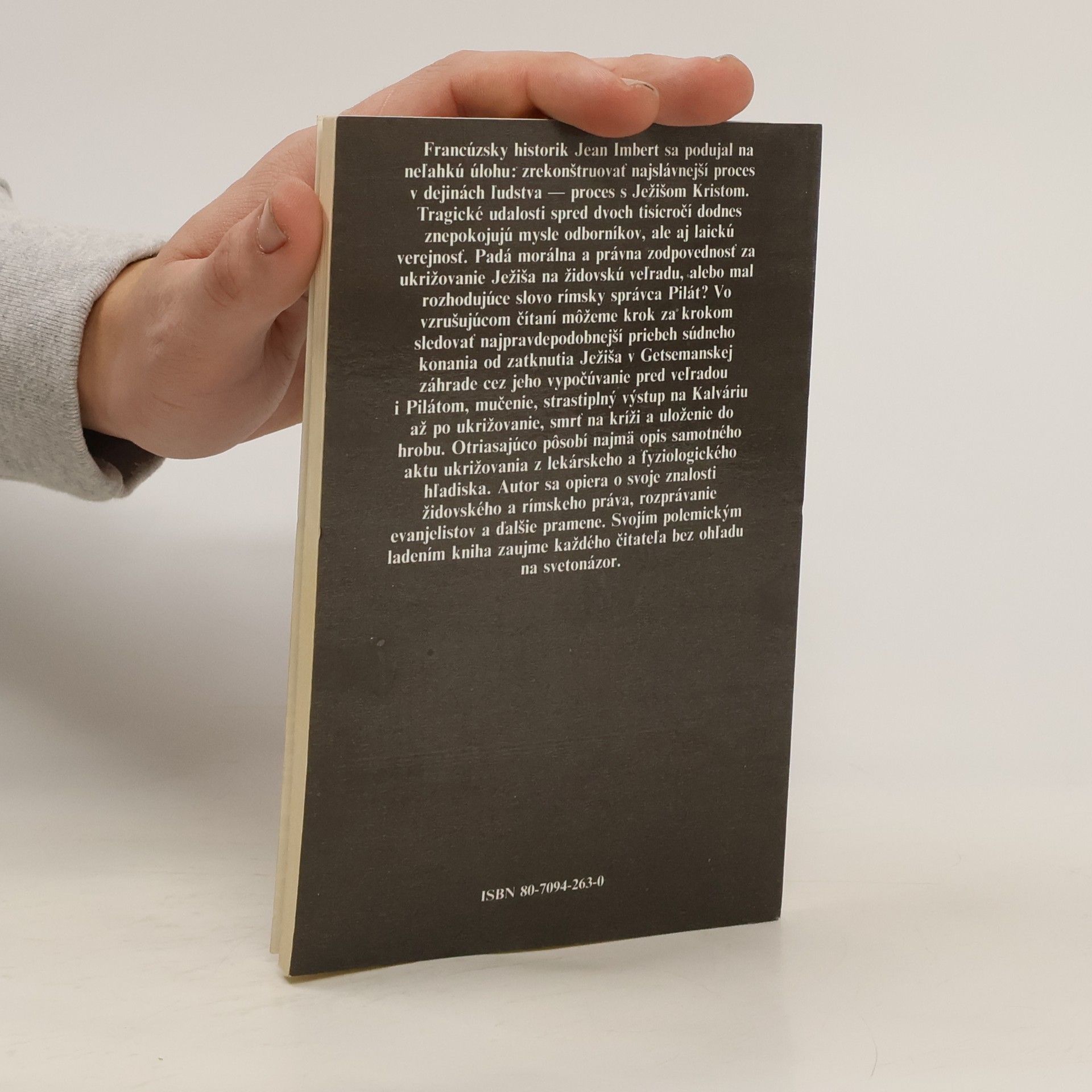 Francouský historik J. Imbert se podílel na nejslavnějším procesu lidstva - život Ježíše Krista. Tragická událost, od níž nás dělí dva tisíce let je a bude stále vděčným tématem pro řadu lidí, tedy i odborníků.