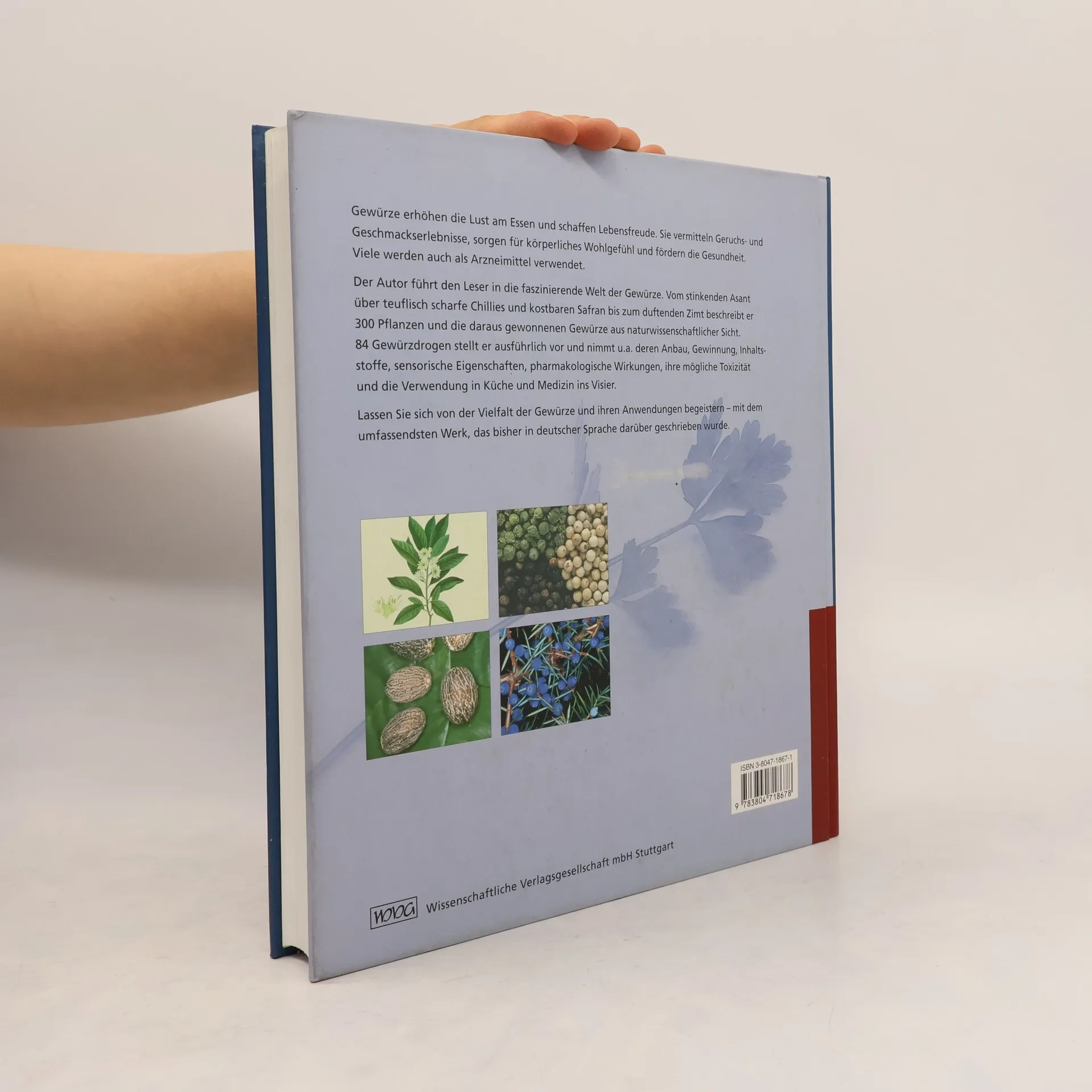 Wie die Würze, so der Braten, weiß der Volksmund. Und außerdem sind Gewürze gesund, z.B. weil sie die Verdauung fördern, den Kreislauf beleben oder einfach für ein körperliches Wohlgefühl sorgen. Der Autor führt den Leser in die faszinierende Welt der Gewürze. Vom stinkenden Asant über teuflisch scharfe Chillies und kostbaren Safran bis zum duftenden Zimt beschreibt er 300 Pflanzen und die daraus gewonnenen Gewürze aus naturwissenschaftlicher Sicht. 84 Gewürzdrogen stellt er ausführlich vor und nimmt u.a. deren Anbau, Gewinnung, Inhaltsstoffe, Eigenschaften, Wikungen und Verwendung in Küche und Medizin ins Visier. Die Leser lassen sich von der Vielfalt der Gewürze und ihren Anwendungen begeistern - mit dem umfassendsten Werk, das bisher in deutscher Sprache darüber geschrieben wurde