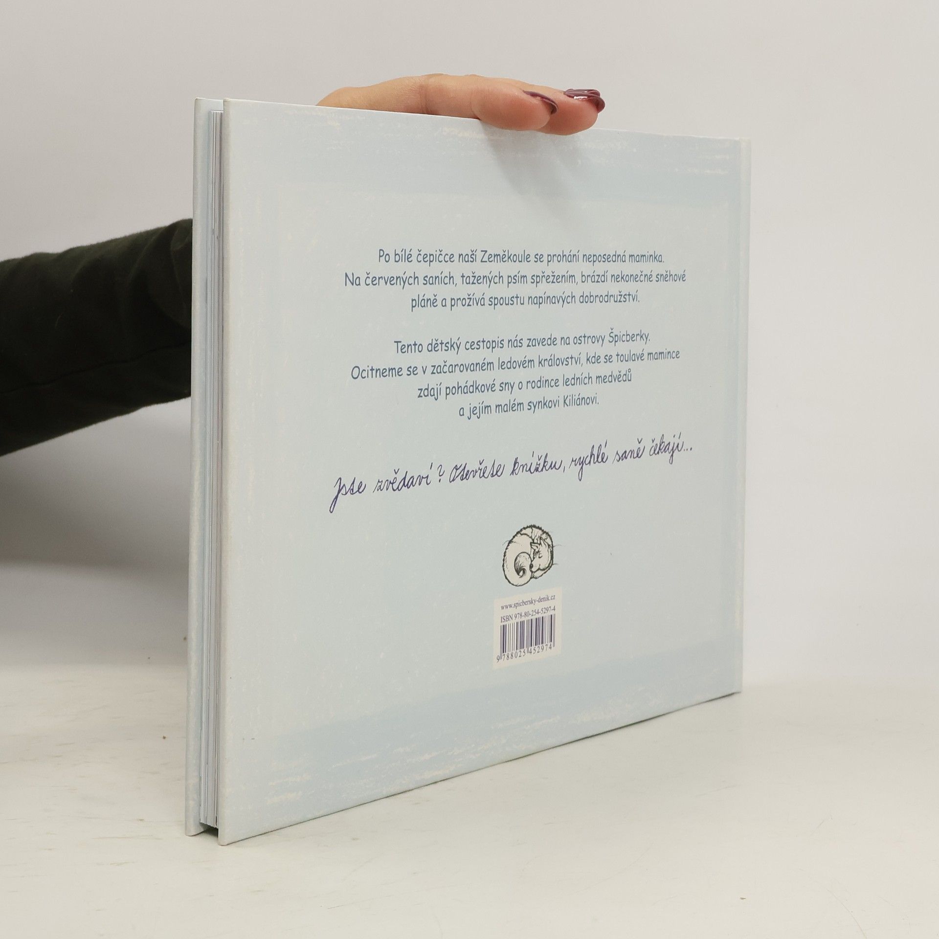 Po bílé čepičce naší Zeměkoule se prohání neposedná maminka. Na červených saních, tažených psím spřežením, brázdí nekonečné sněhové pláně a prožívá spoustu napínavých dobrodružství... Špicberský deník neposedné maminky je vlastně pohádkou i dětským cestopisem. Ocitneme se v začarovaném ledovém království, kde se toulavé mamince zdají neuvěřitelné sny o rodince ledních medvědů a jejím malém synovi Kiliánovi a zároveň se dozvíme spoustu zajímavých přírodopisných informací z dalekého severu. Knížka je psána čtivou, poutavou formou a je bohatě doprovázena krásnými fotografiemi a ilustracemi. Přesvědčivě vtáhne do děje malé i velké čtenáře... zdroj: http://knihy.abz.cz/prodej/spicbersky-denik-neposedne-maminky