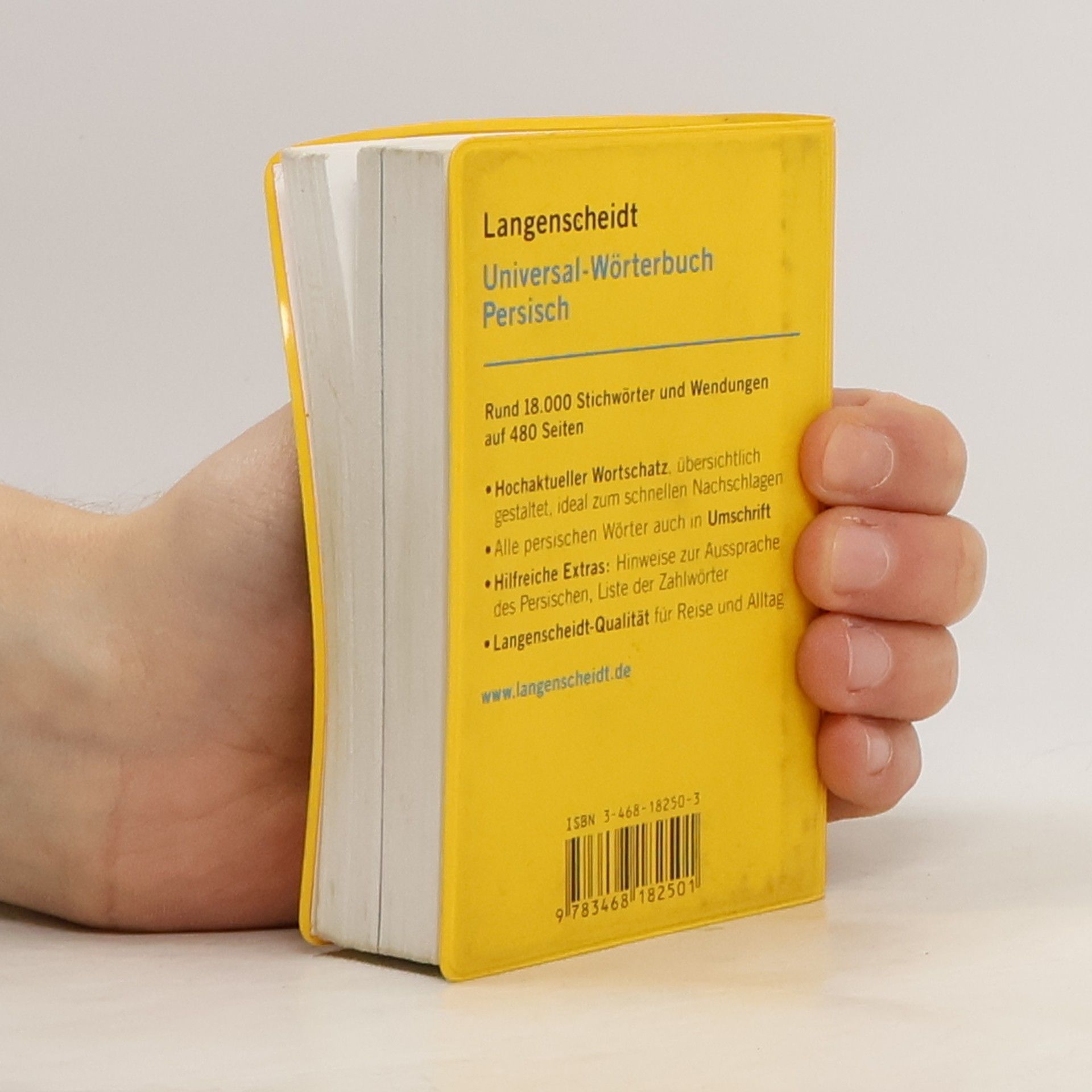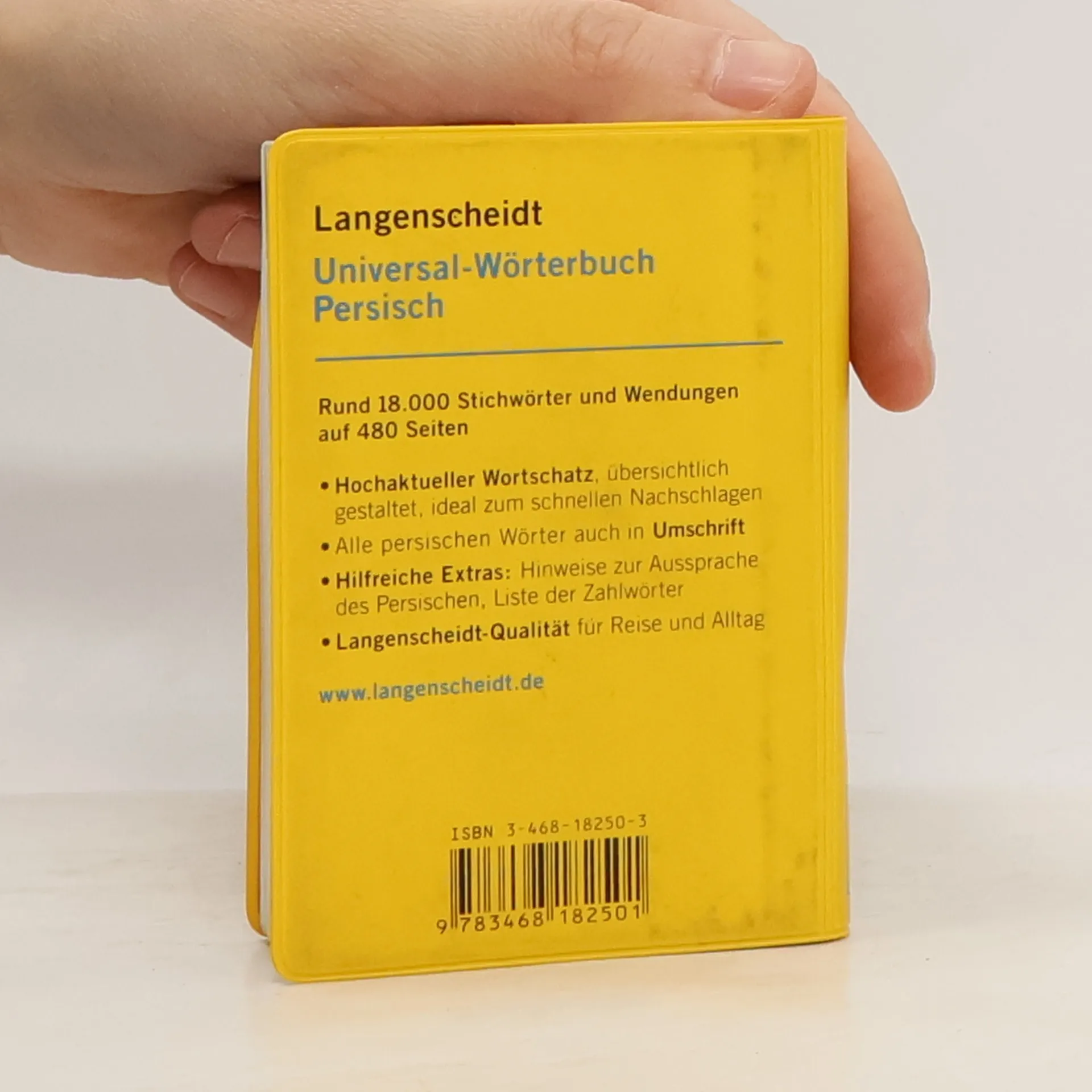 Mit dem kleinen, handlichen Universal-Wörterbuch Persisch (Farsi) von Langenscheidt finden Sie schnell die Wörter und Wendungen, die Sie im Alltag und auf Reisen brauchen. Die Einführung enthält eine Übersicht des persischen Alphabets und Informationen zur Aussprache des Persischen, die Ihnen die Benutzung des Wörterbuchs sowie die Kommunikation vor Ort erleichtern. Rund 18.000 Stichwörter und Wendungen Moderner Wortschatz Umschrift bei allen persischen Stichwörtern und Übersetzungen Zielgruppe: Flüchtlinge aus Afghanistan, die Dari sprechen; Reisende in den Iran und Einsteiger ins Persische