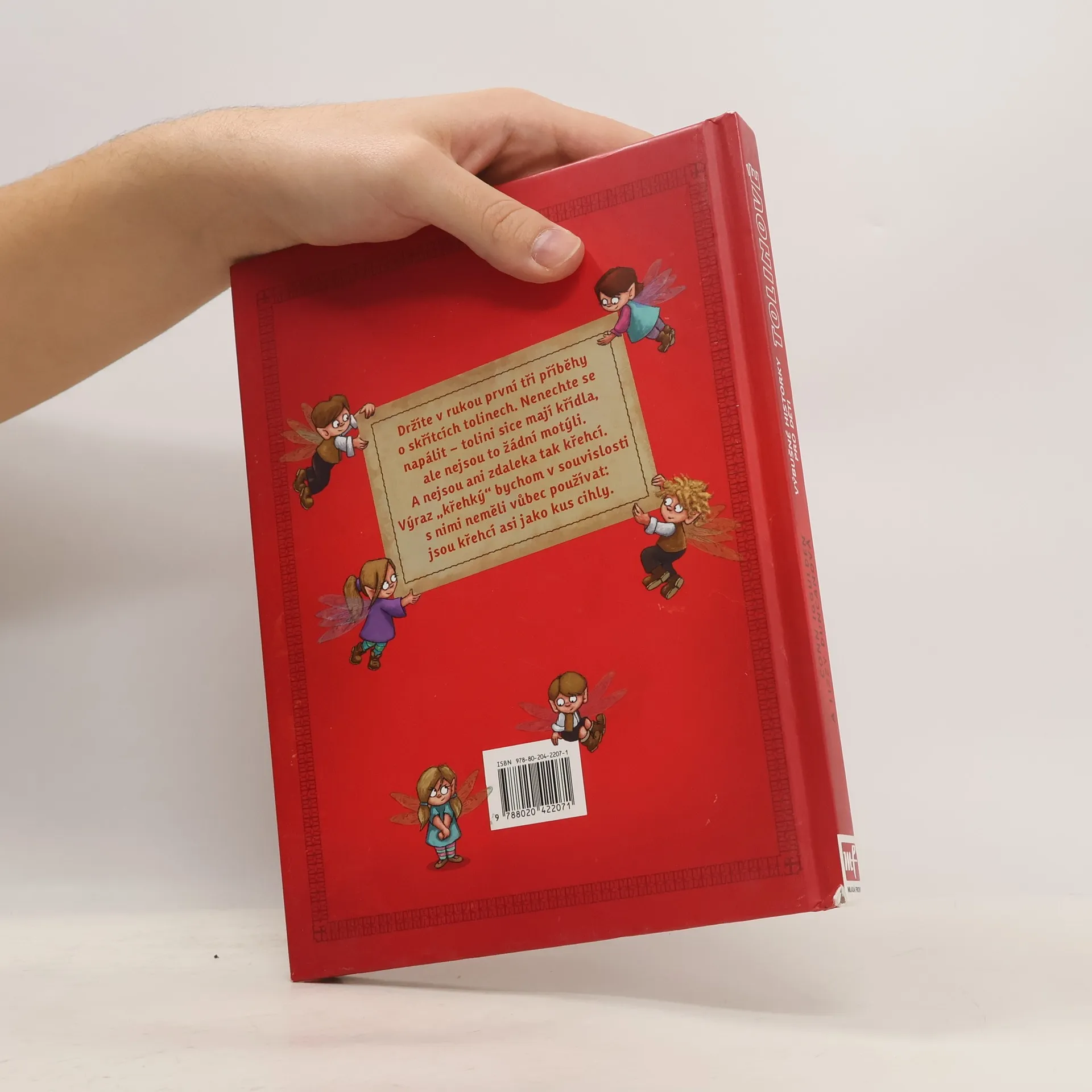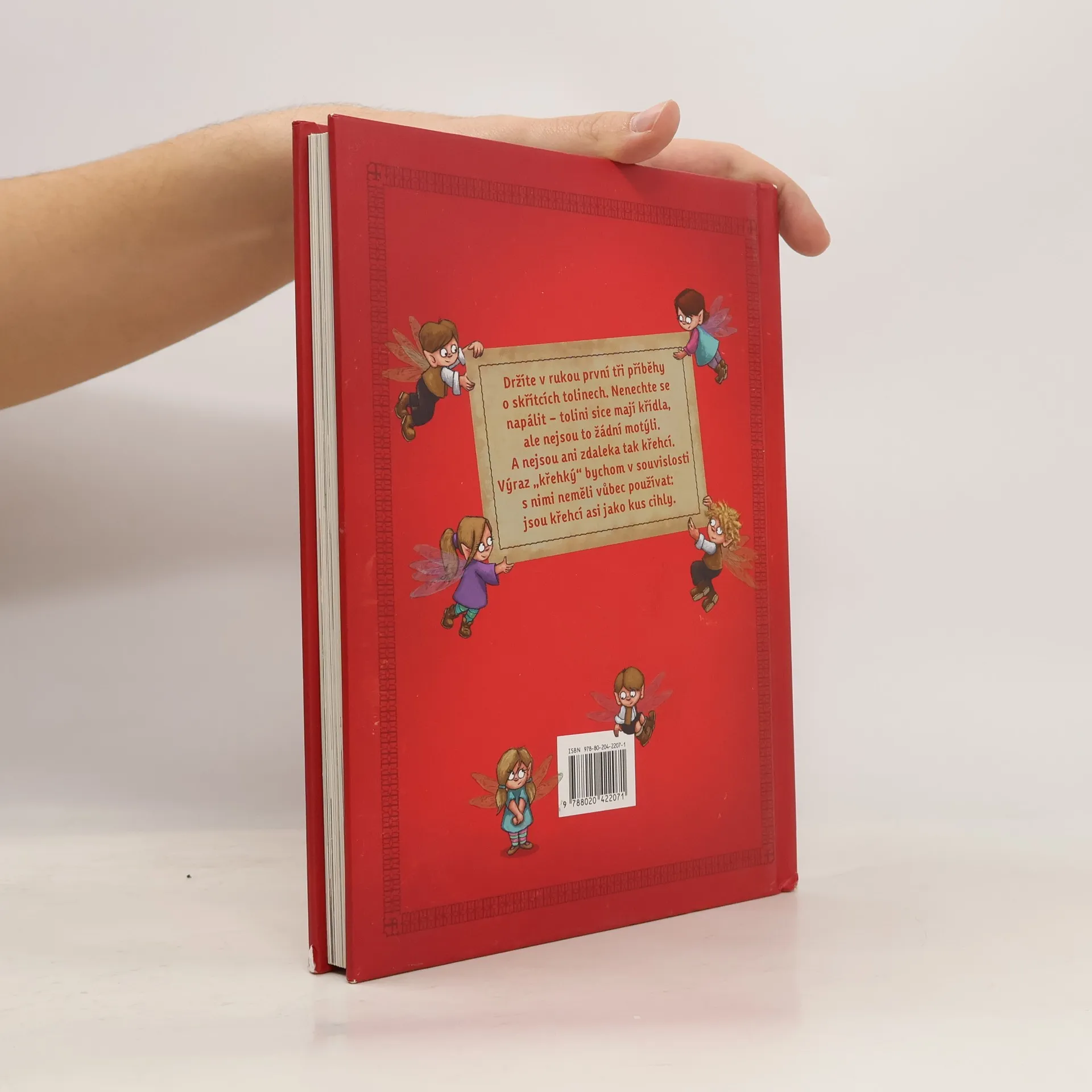 Kniha obsahuje první tři příběhy o skřítcích tolinech. Nenechte se napálit – tolini sice mají křídla, ale nejsou to žádní motýli. A nejsou ani zdaleka tak křehcí. Výraz „křehký“ bychom v souvislosti s nimi neměli vůbec používat: jsou křehcí asi jako kus cihly.