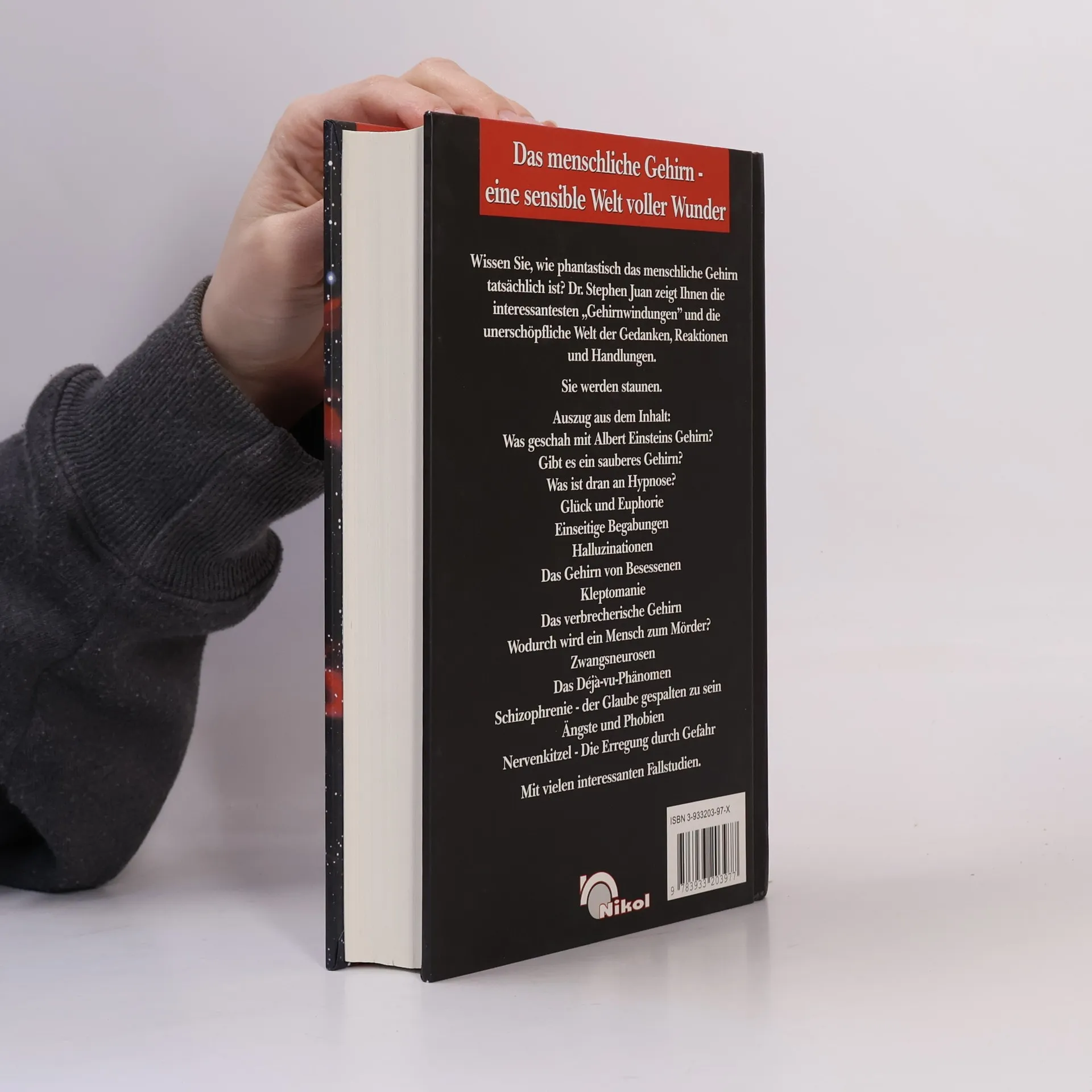 Warum ist das Gehirn das sauberste Organ des Menschen? Stehen Sauberkeit und Intelligenz in einem Zusammenhang - sprich: Hatte Albert Einstein ein besonders reinliches Gehirn? Warum glauben manche Menschen, sie hätten ihren Körper verloren, und andere, dass ihnen ein Doppelgänger folgt? Gibt es Déjà-vus wirklich? Ist Vampirismus eine Leberkrankheit? Wie viele verschiedene menschliche „Gehirne“ gibt es? Dr. Stephen Juan wendet sich in diesem Buch dem menschlichen Kopf zu. und hält noch mehr bizarre Phänomene zum Staunen für Sie bereit.