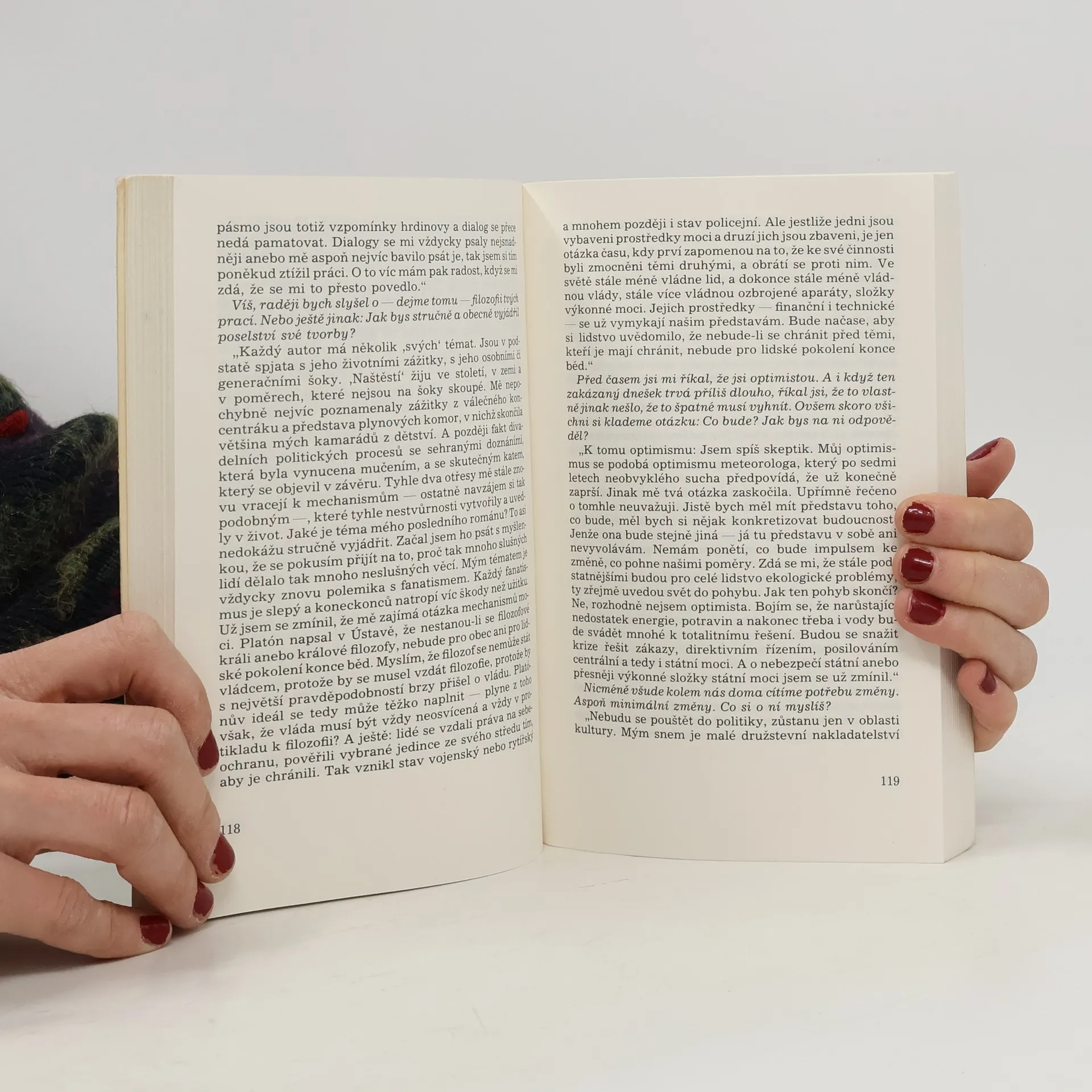 Rozhovory autora s lidmi v české opozici (Vaculík, Havel, Kohout, Hanzelka, Zikmund, Klíma, Landovský, Kolář, Gruša atd.).