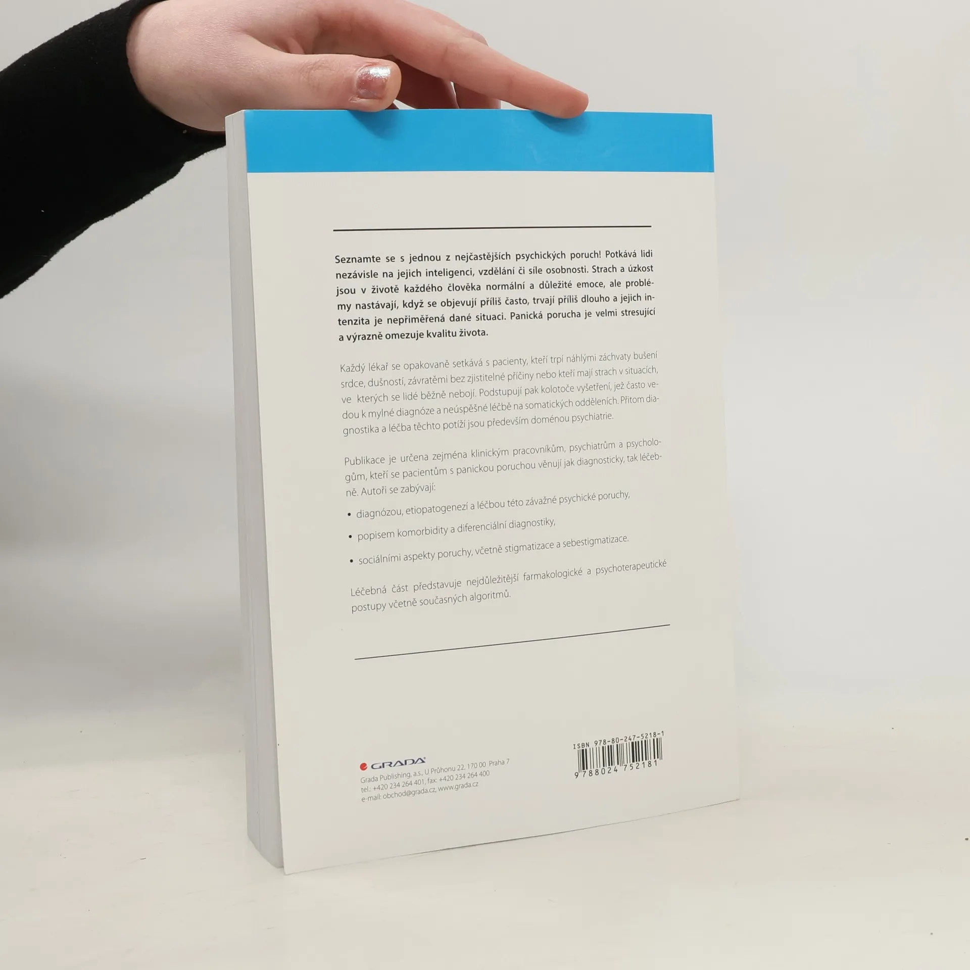 Seznamte se s jednou z nejčastějších psychických poruch! Potkává lidi nezávisle na jejich inteligenci, vzdělání či síle osobnosti. Strach a úzkost jsou v životě každého člověka normální a důležité emoce, ale problémy nastávají, když se objevují příliš často, trvají příliš dlouho a jejich intenzita je nepřiměřená situaci, v níž se objevují. Panická porucha je velmi stresující a výrazně omezuje kvalitu života. Každý lékař se opakovaně setkává s pacienty, kteří trpí náhlými záchvaty bušení srdce, dušností, závratěmi bez zjistitelné příčiny nebo kteří mají strach ze situací, kterých se lidé běžně nebojí. Podstupují pak kolotoče vyšetření, jež často vedou k mylné diagnóze a neúspěšné léčbě na somatických odděleních. Přitom diagnostika a léčba těchto potíží jsou především doménou psychiatrie. Publikace je určena zejména klinickým pracovníkům, psychiatrům a psychologům, kteří se pacientům s panickou poruchou věnují jak diagnosticky, tak léčebně. Autoři se zabývají: • diagnózou, etiopatogenezí a léčbou této závažné psychické poruchy, • popisem komorbidity a diferenciální diagnostiky, • sociálními aspekty poruchy, včetně stigmatizace a sebestigmatizace. Léčebná část představuje nejdůležitější farmakologické a psychoterapeutické postupy včetně současných algoritmů.