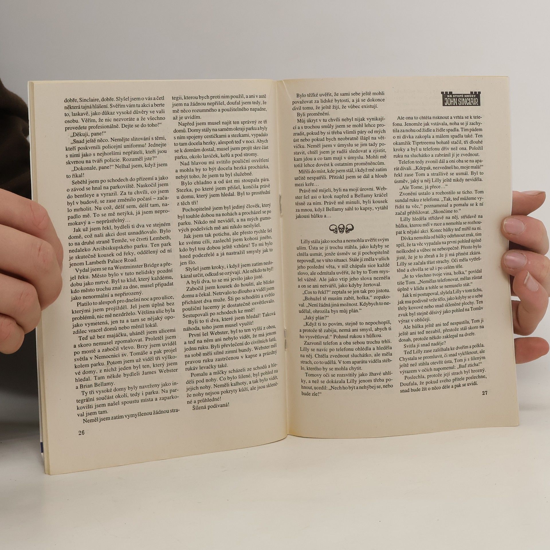 Neuvěřitelné a záhadné příběhy – vrchní inspektor Scotland Yardu John Sinclair svádí ať už sám, či i s pomocí svých přátel nerovný boj se zlem a nadpřirozenými silami. Zahlédl jsem reflektory auta za sebou ve zpětném zrcátku a hned mi bylo jasné, že to auto jede moc rychle. Bylo mokro a to je vždycky nebezpečné! Auto ještě víc zrychlilo a přitom se dostalo mírně do smyku. Radši jsem uhnul ke krajnici, aby mi mého bentleye někdo nesestřelil do příkopu. Moje auto už zažilo leccos a nemínil jsem je zase vézt do servisu. Auto za mnou mě předjelo. Konečně jsem zaznamenal, že to je rychlé auto. Lancia. Pak už jsem viděl jen rudě žhnoucí zadní světla, vysoký proud stříkající vody a trochu páry stoupající od rozehřáté koncovky výfuku. Ten řidič jel jako šílenec za chvíli mi zmizel za zatáčkou. Možná ho omrzel život, možná byl opilý, těžko říct. Jenom jsem doufal, že jeho havarované a rozmlácené auto nebudu za chvíli někde míjet převrácené v poli.
