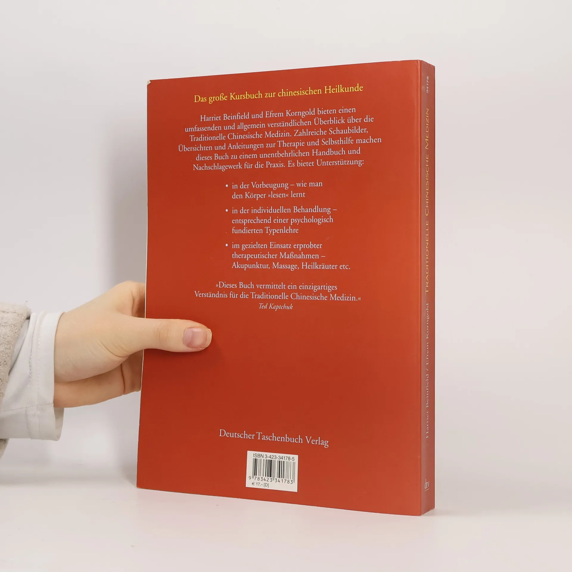 Harriet Beinfield und Efrem Korngold leisten seit über dreißig Jahren Pionierarbeit im Bereich der Traditionellen Chinesischen Medizin. Ihr wegweisendes Buch ist gleichzeitig eine fundierte, leicht verständliche Einführung in die TCM und ihre Hintergründe wie auch ein unentbehrliches Handbuch und Nachschlagewerk mit großem Praxiswert für jeden, der dieses erprobte Heilsystem für sich nutzen will. Checklisten zur eigenen Typ-Bestimmung, zahlreiche Schaubilder und detaillierte Anleitungen zur Zusammenstellung einer auf die persönlichen Bedürfnisse zugeschnittenen Therapie geben hilfreiche Unterstützung: In der Vorbeugung - den eigenen Körper »lesen« zu lernen ist ein ganz wesentlicher Bestandteil der TCM; In der individuellen Behandlung - entsprechend einer psychologisch fundierten Typenlehre; Im gezielten Einsatz erprobter therapeutischer Maßnahmen - Akupunktur, Massage, Heilkräuter etc. »Dieses Buch vermittelt ein einzigartiges Verständnis für die traditionelle chinesische Medizin.« Ted Kaptchuk