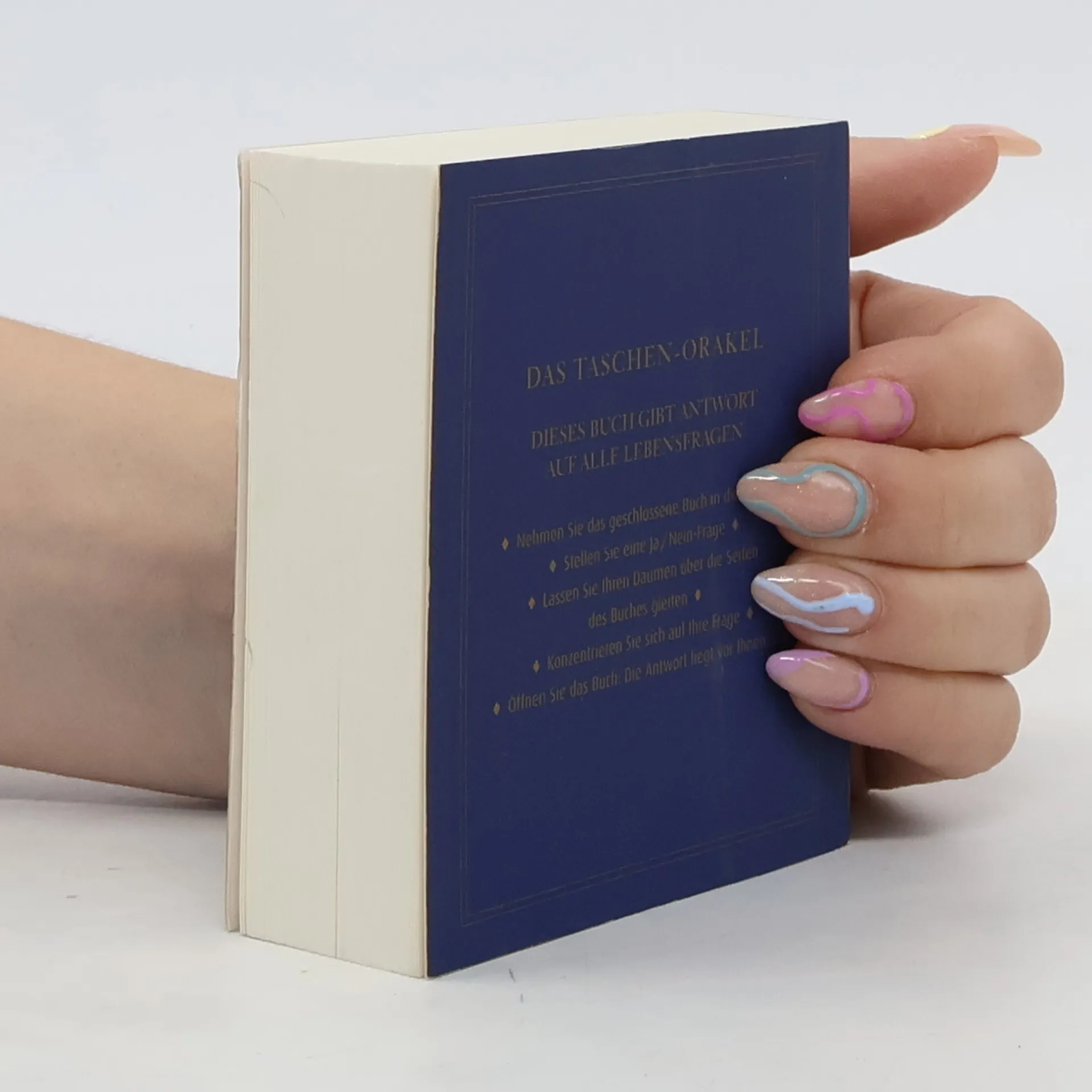 Nehmen Sie das geschlossene Buch in die Hand. Stellen Sie eine Ja/Nein-Frage. Lassen Sie Ihren Daumen über die Seiten des Buches gleiten. Konzentrieren Sie sich auf Ihre Frage. Öffnen Sie das Buch: Die Antwort liegt vor Ihnen... Nach dem großen Erfolg vom „Buch der Antworten“ nun endlich die Westentaschenausgabe. Auch sie weiß Antwort auf alle Lebensfragen. Sollen Sie übers Wochenende verreisen? Haben Sie sich in den richtigen Mann verliebt? Passt die Arbeitsstelle zu Ihrem Typ? Sie können das Buch immer wieder befragen - seine Antworten werden Ihnen überraschende Einsichten vermitteln.