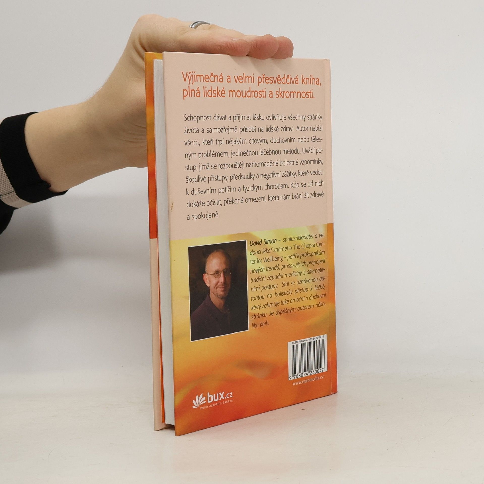 Schopnost dávat a přijímat lásku ovlivňuje všechny stránky života a samozřejmě působí na lidské zdraví. David Simon čtenářům ukazuje, jak se mohou zbavit některých bolestných představ a vzpomínek, které vedou k duševním potížím a fyzickým chorobám. Kdo se od nich dokáže očistit, má šanci překonat omezení, která nám brání žít zdravě a spokojeně.