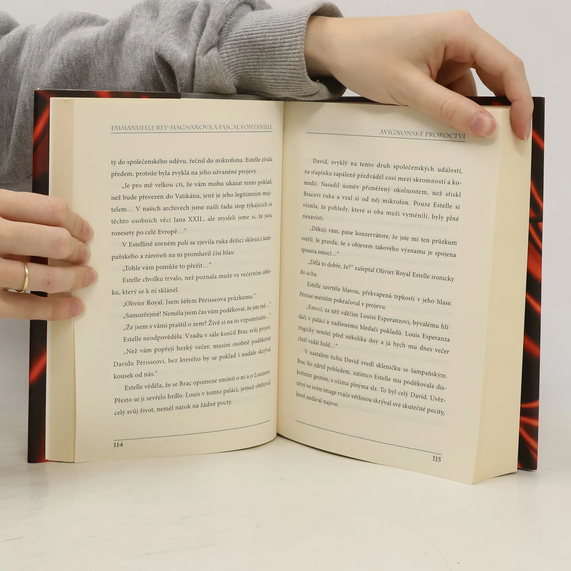 Příběh nás zavádí do nádherného papežského paláce v Avignonu, jehož hrdé a neprostupné zdi skrývají mnohá tajemství. Mezi nimi je jedno, pro které se už po celá staletí vraždí, rozvrací rodiny a ničí lidské osudy – Avignonské proroctví předpovídá budoucnost světa, a kdo zná budoucnost, má v rukou absolutní moc. Hrdinkou románu je mladá historička Estelle, asistentka kurátora papežského paláce, která pochází ze starobylého rodu Esperanzů, od pradávna osudově spojeného s palácem v Avignonu. Nemůže tušit, že právě vrcholí boj mezi skupinami, které se snaží za každou cenu získat tajemný dokument ... Děj románu je inspirován místní legendou, podle níž měl papež Jan XXII., zvolený v roce 1316, objevit dokument, považovaný původně za Nostradamovo proroctví, které předpovídá budoucnost lidstva až do roku 4000, a poté ho měl ukrýt údajně v papežském paláci v Avignonu.