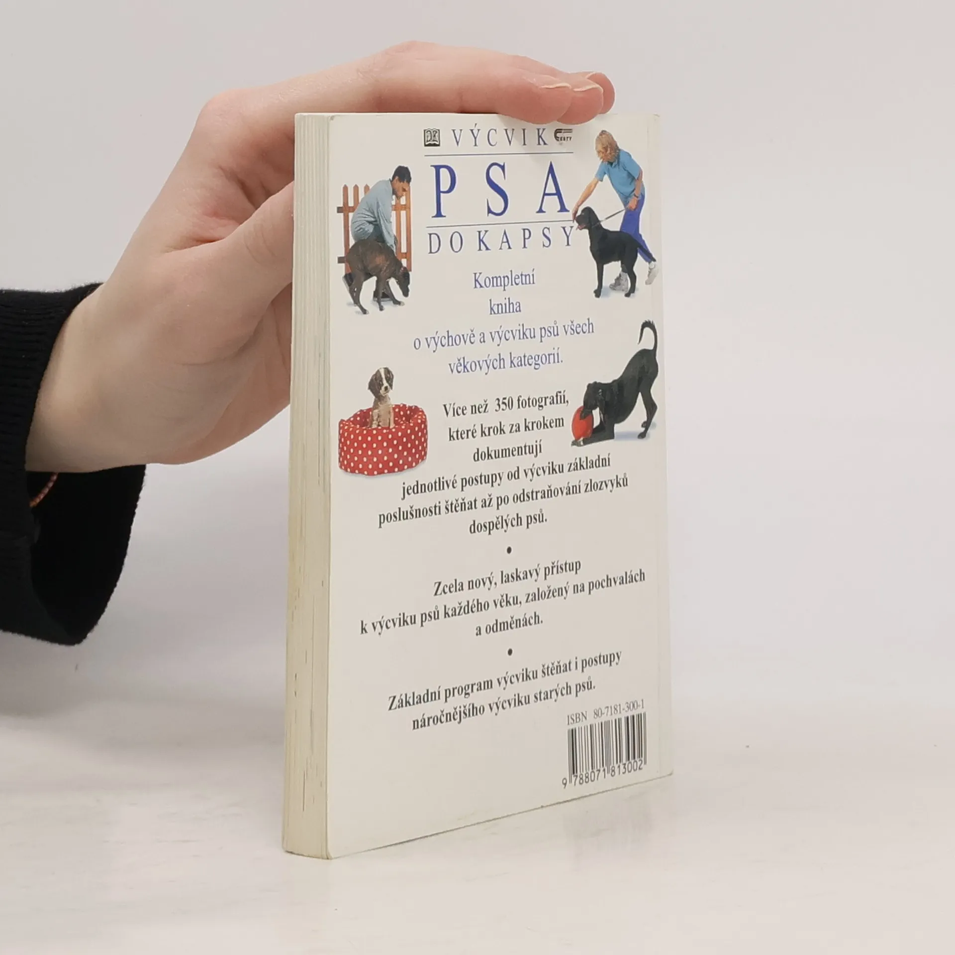 Zcela nový, laskavý přístup k výcviku, založený na pochvalách a odměnách pamlsky. Více než 350 fotografií, které krok za krokem dokumentují jednotlivé stupně výcviku od základní poslušnosti štěněte po odstraňování zlozvyků dospělých psů.