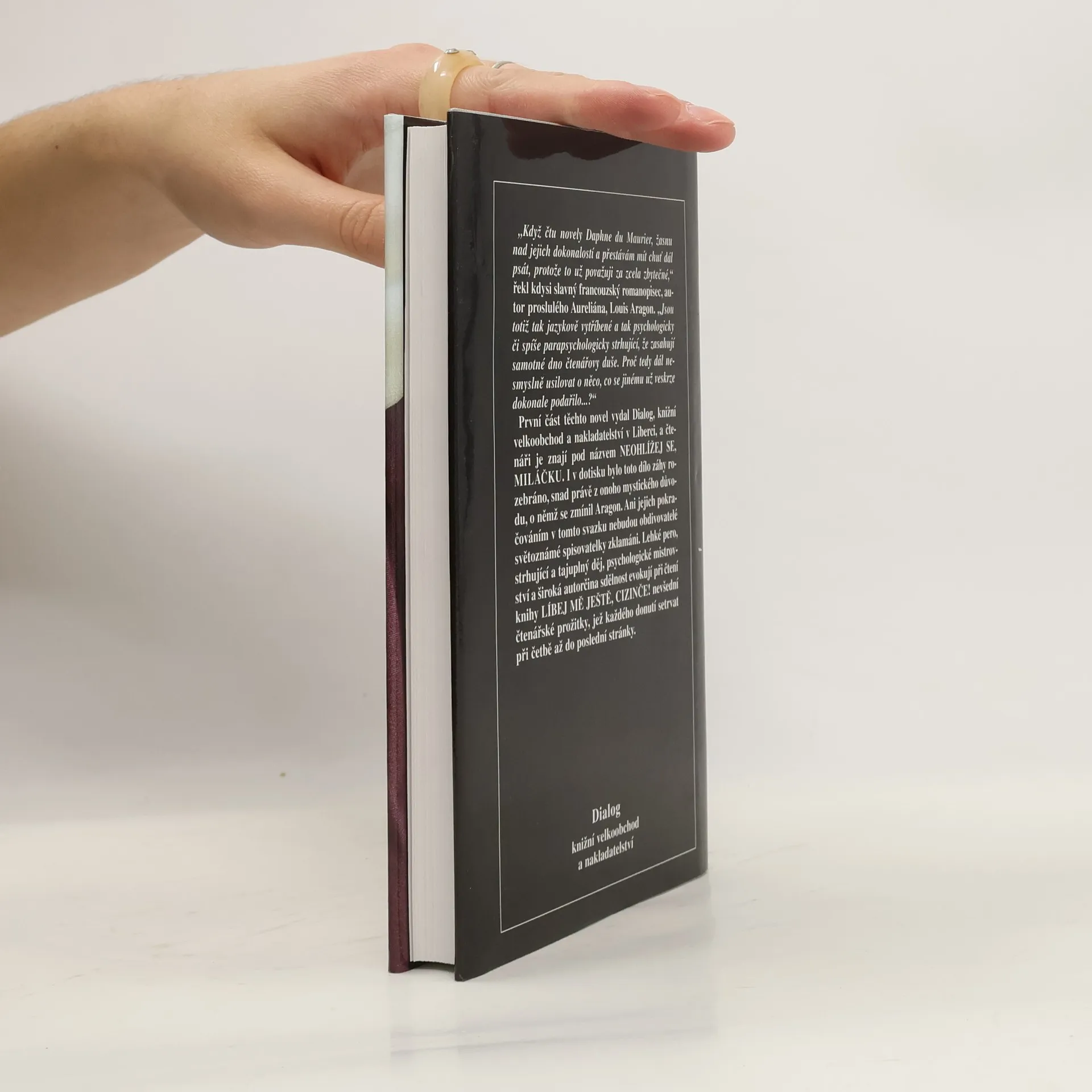 Místo anotace slova Louise Aragona : „Když čtu novely Daphne du Maurier, žasnu nad jejich dokonalostí a přestávám mít chuť dál psát, protože to už považuji za naprosto zbytečné. Jsou totiž tak jazykově vytříbené a tak psychologicky či spíše parapsychologicky strhující, že zasahují samotné dno čtenářovy duše. Proč tedy dál nesmyslně usilovat o něco, co se jinému už veskrze dokonale podařilo."