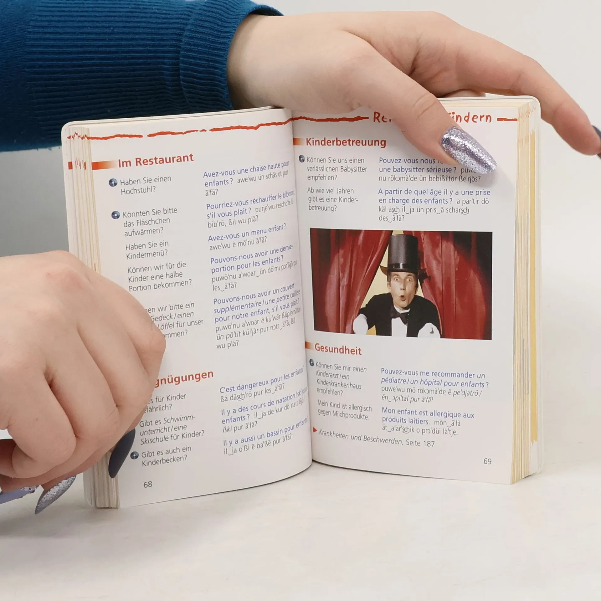 Für alle wichtigen Situationen auf der Reise Mit dem Langenscheidt Sprachführer Französisch sind Verständigungsprobleme im Urlaub und auf Reisen kein Thema mehr, denn er macht einfache Kommunikation auch ohne französische Sprachkenntnisse möglich. Die gängigen Themen, die Ihnen auf Reisen begegnen, werden jeweils intensiv in einem Kapitel behandelt – vorgefertigte Mustersätze mit Lautschriftangabe helfen Ihnen, praktisch jede Situation zu meistern. * Alle wichtigen Sätze und Wörter zu den Themen Erste Kontakte, Übernachten, Unterwegs, Reisen mit Kindern, Behinderte, Kommunikation, Essen und Trinken, Einkaufen, Sport und Entspannung, Kultur und Nachtleben, Behörden, Gesundheit, Die Zeit, Wetter und Umwelt * Durchgängig mit Lautschrift * Übersichtliche Gestaltung mit vielen Farbfotos * Topaktuelle Infos zu Land und Leuten * Integrierte französische Kurzgrammatik * Mit Reisewörterbuch Deutsch-Französisch