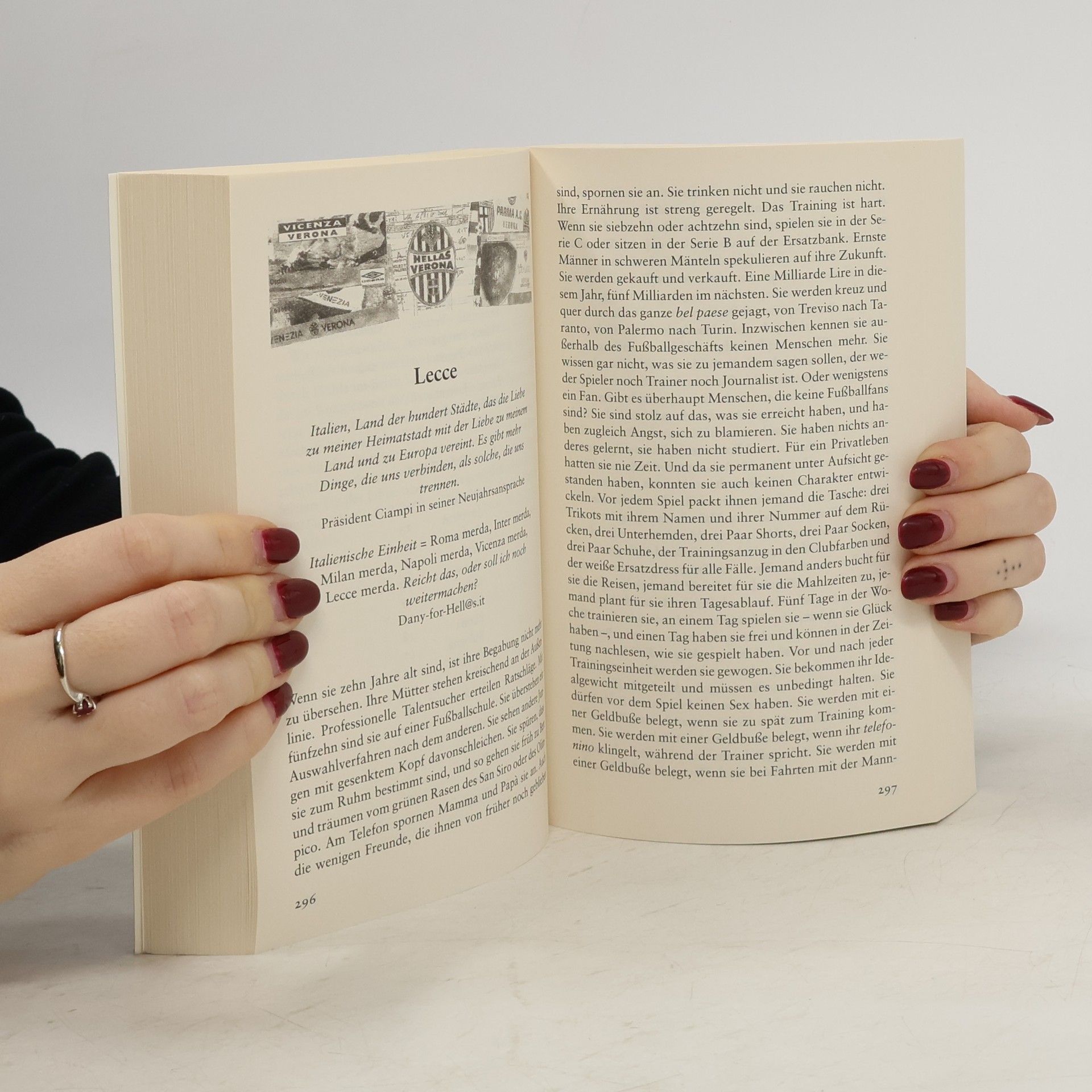 Seit zwanzig Jahren lebt Tim Parks nun im Veneto, und noch immer ist ihm die italienische Seele ein Rätsel. Was liegt also näher, als sich endlich mit dem Wichtigsten im Leben eines Italieners zu beschäftigen, dem Fußball? Eine Saison lang reist Parks mit den Fans des Vereins Hellas Verona von Spiel zu Spiel. Der Leser erfährt nicht nur Erstaunliches über Land und Leute, sondern fiebert auch von Kapitel zu Kapitel mehr dem Ausgang der Spiele entgegen.