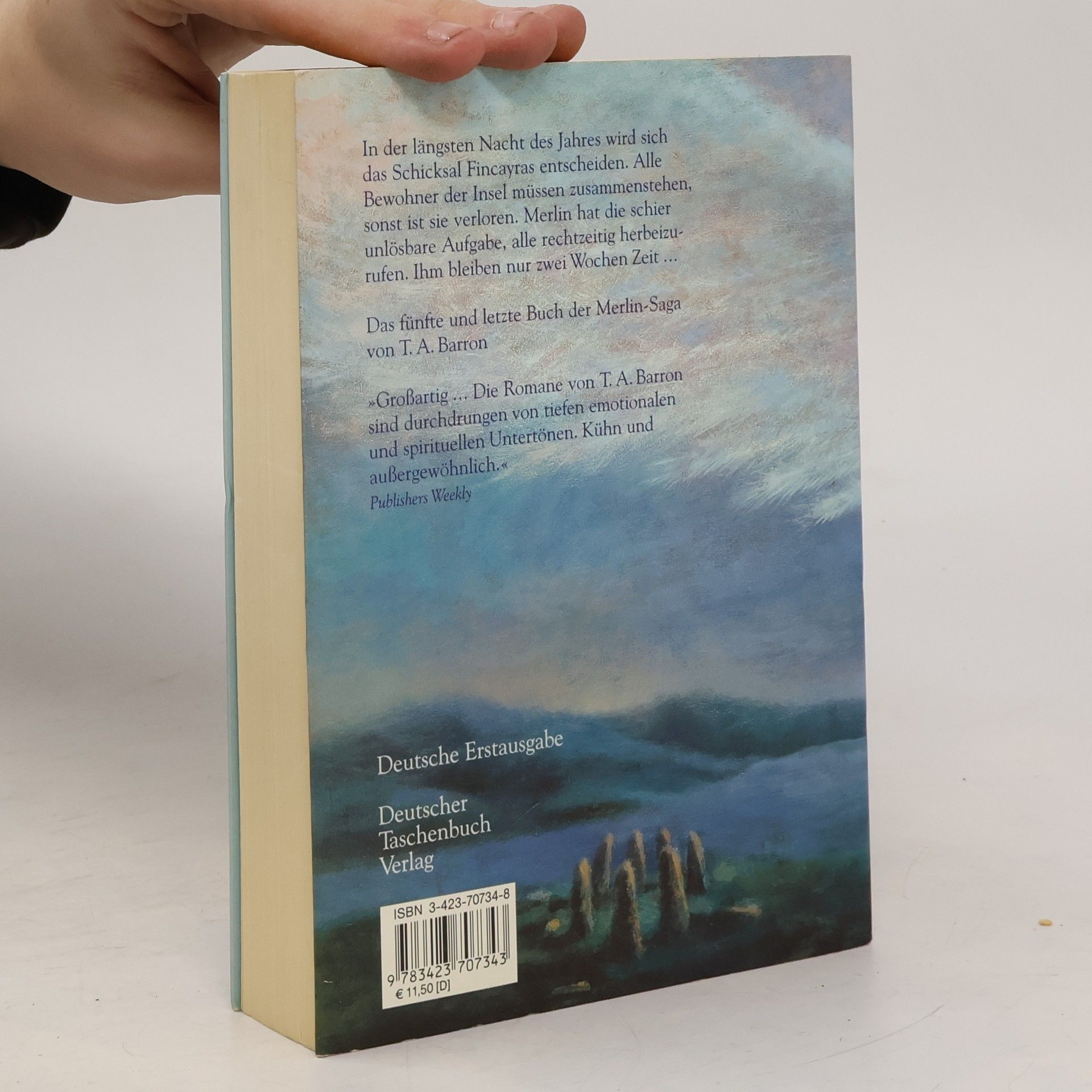 Der fünfte und letzte Teil der Merlin-Saga! Nach den vielen Prüfungen, die Merlin bestanden hat, scheint sein Leben auf Fincayra in ruhigen Bahnen zu verlaufen. Er genießt das Zusammensein mit Hallia, der jungen Hirschfrau, und durchlebt seine erste scheue Liebe. Da schreckt ihn die düstere Prophezeiung des großen Geistes Dagda auf: Fincayra wird in der längsten Nacht des Jahres aufhören zu bestehen, wenn es nicht gelingt, alle Bewohner zu vereinen, um den Ansturm des Herrn der Unterwelt, Rhita Gawr, abzuwehren. Die Zeit ist knapp, wie soll Merlin alle rechtzeitig herbeirufen? Außerdem sieht er sich seinem schlimmsten Feind gegenüber, der ihm seltsam vertraut vorkommt. Es ist ein grausamer Krieger mit Schwertern statt Armen … Der fünfte und letzte Teil der Merlin-Saga stellt ihren Höhepunkt dar. Meisterhaft variiert T. A. Barron das klassische Thema des Wissens durch Mitleid.