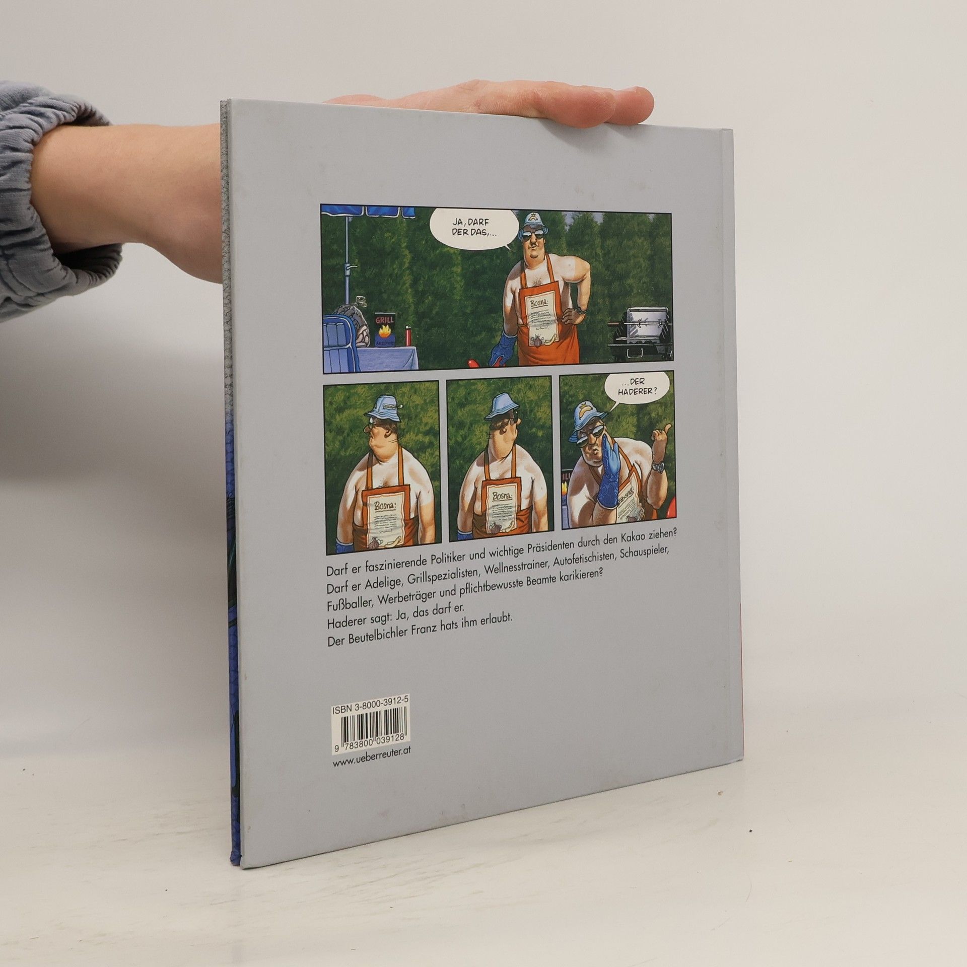 Darf er faszinierende Politiker und wichtige Präsidenten durch den Kakao ziehen? Darf er Adelige, Grillspezialisten, Wellnesstrainer, Autofetischisten, Schauspieler, Fußballer, Werbeträger und pflichtbewusste Beamte karikieren? Haderer sagt Ja, das darf er. Der Beutelbichler Franz hats ihm erlaubt.