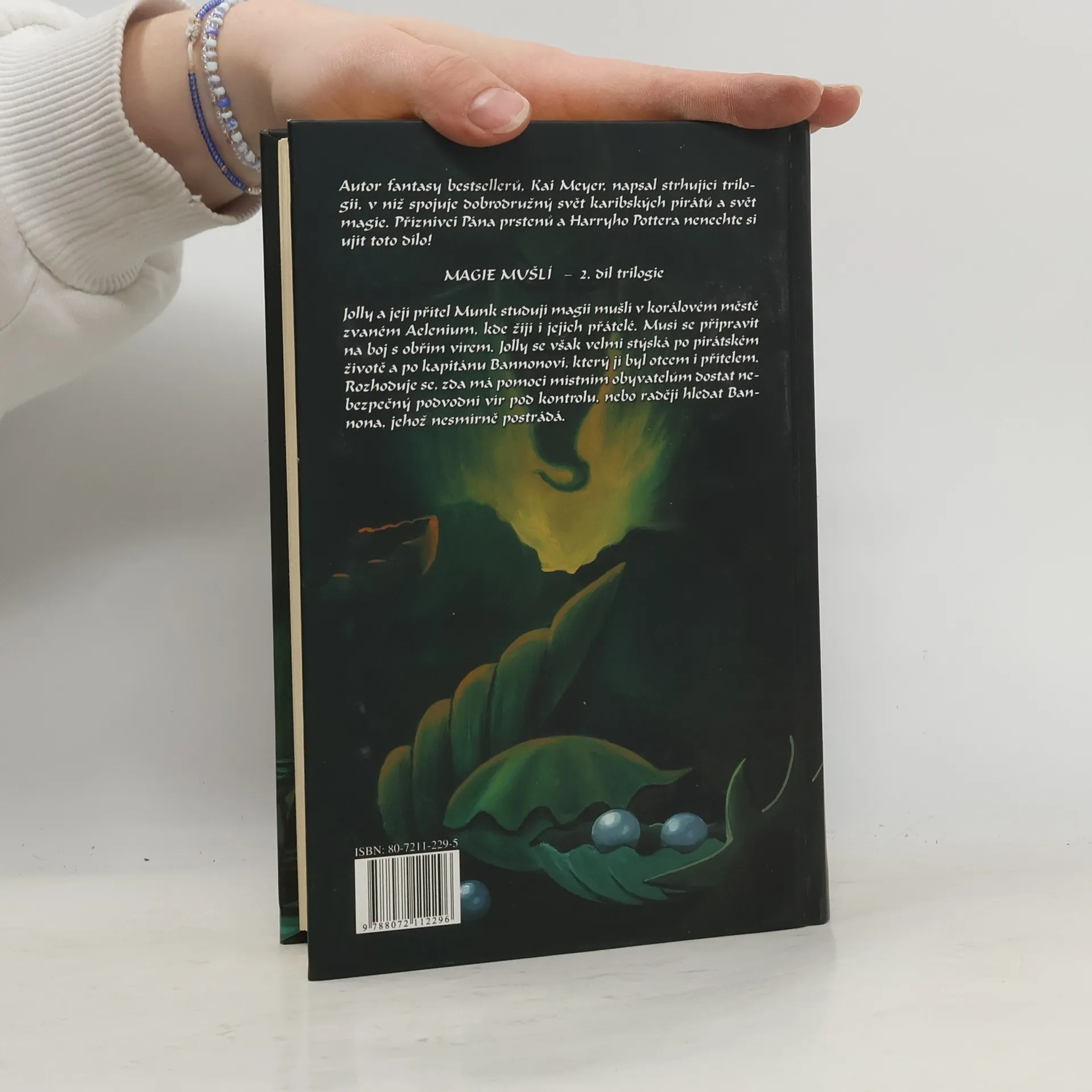 Jolly a její přítel Munk studují magii mušlí v korálovém městě zvaném Aelenium, kde žijí i jejich přátelé. Musí se připravit na boj s obřím vírem. Jolly se však velmi stýská po pirátském životě a po kapitánu Bannonovi, který jí byl otcem i přítelem. Rozhoduje se, zda má pomoci místním obyvatelům dostat nebezpečný podvodní vír pod kontrolu, nebo raději hledat Bannona, jehož nesmírně postrádá. Autor knih pro mládež Kai Meyer napsal strhující trilogii, v níž spojuje dobrodružný svět karibských pirátů a svět magie.