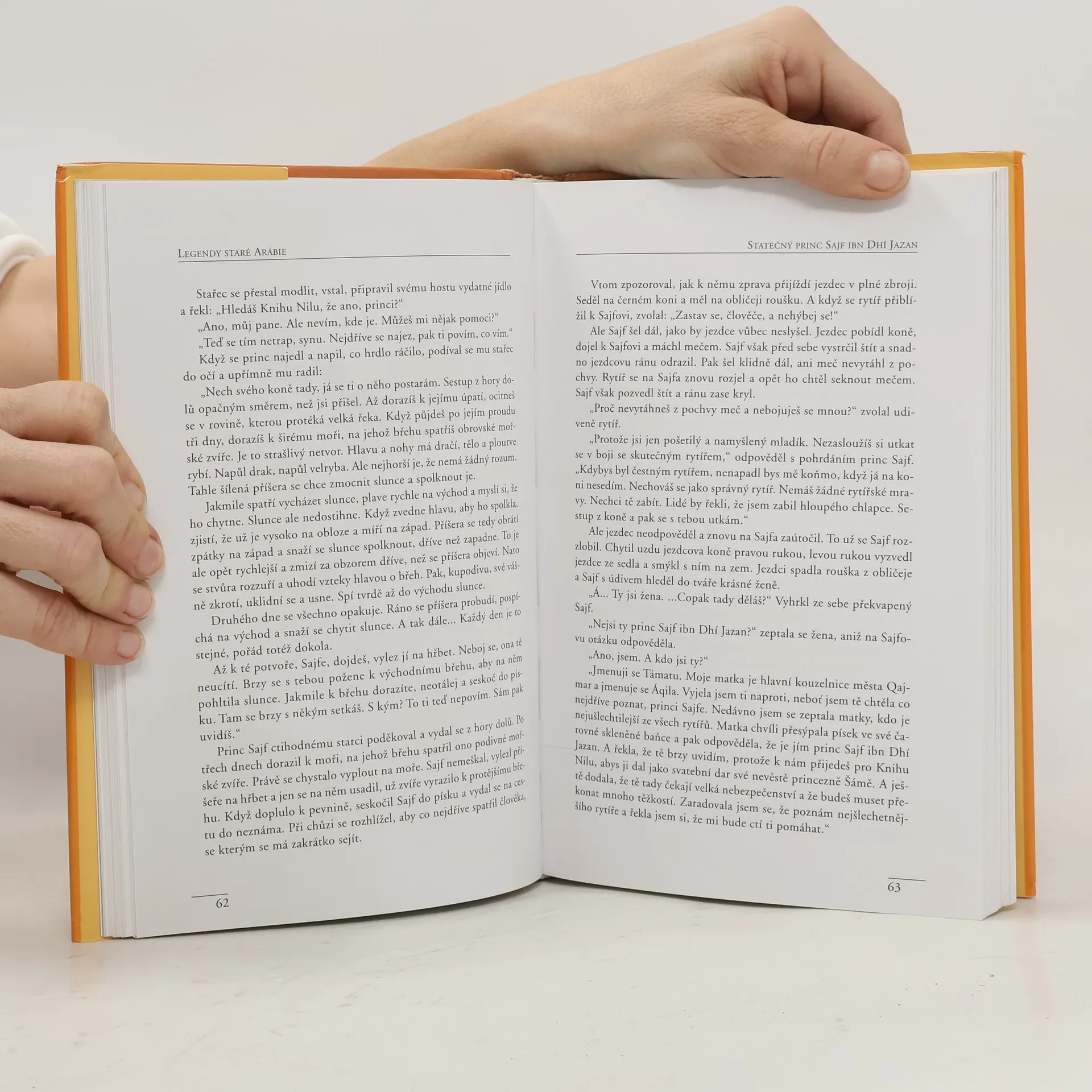Tato půvabná knížka vás zavede na výlet do starých časů... Ano, svět arabských pověstí a legend, tak obrazivý a snivý, v němž vystupují neohrožení princové, pohádkově krásné princezny, démoni, dobří džinové, nejrůznější postavičky z pozemské i nadpřirozené a kde lidé cestují na létajících kobercích a chrabří mládenci bojují s draky... Citlivě a hlubokou znalostí věci, vypráví zkušený autor příběhy, jež čtenáři otevírají bránu do pro nás exotické říše, příběhy, které jsou odrazem arabské kultury a doby, v níž byly napsány.