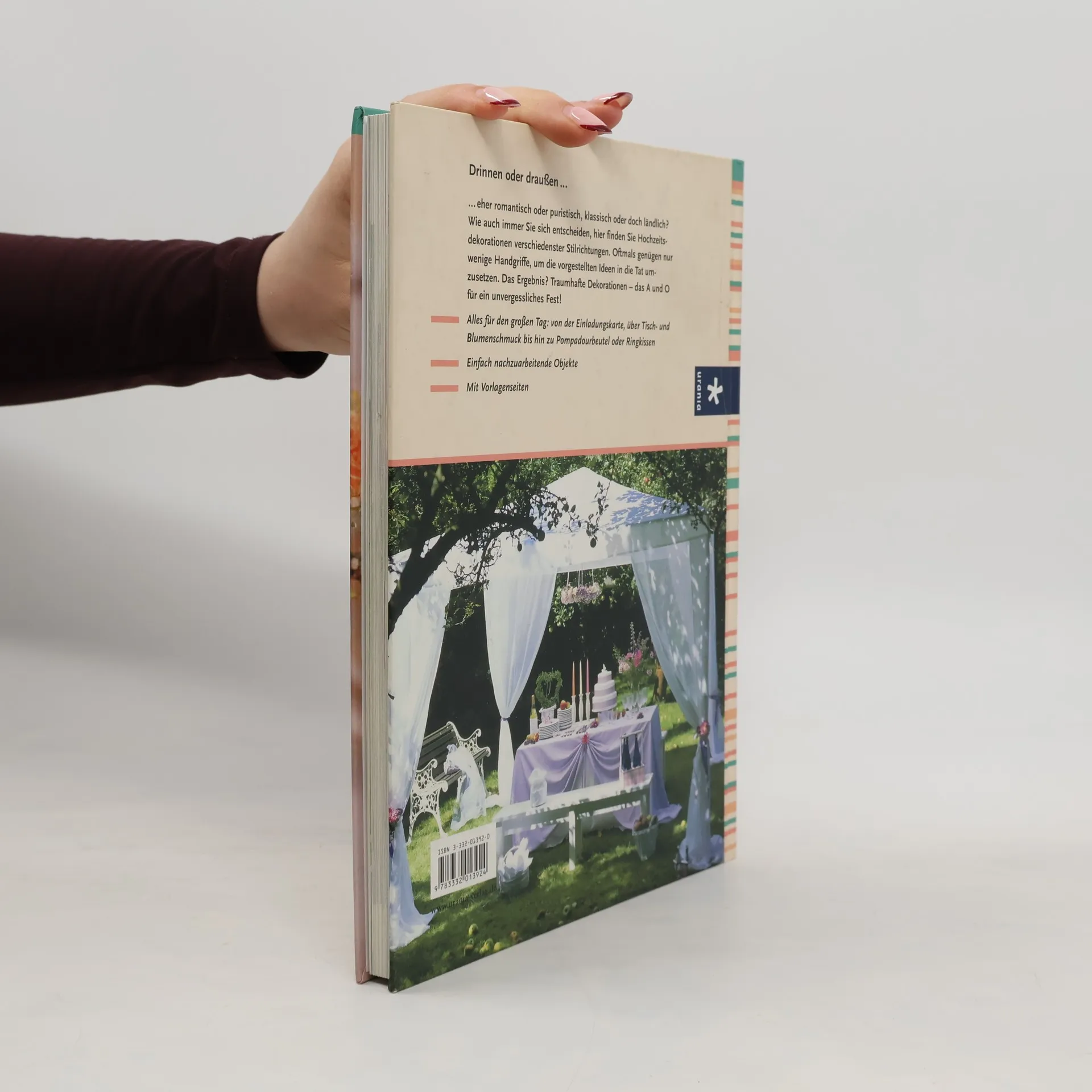 Drinnen oder draußen, eher romantisch oder puristisch, klassisch oder doch ländlich? Wie auch immer die Entscheidung ausfallen mag - in Susanne Helmolds neuem Buch finden Brautpaare Dekorationsideen verschiedenster Stilrichtungen. Von nun an sind passende Einladungen, Menükarten, Blumen- und Tischarrangements oder aber liebevolle Details wie Konfettitüten, Ringkissen und Pompadourbeutel kein Grund mehr, im Vorfeld zu verzweifeln. Denn oftmals genügen nur wenige Handgriffe, um die hier vorgestellten Ideen in die Tat umzusetzen. Das Ergebnis? Traumhafte Dekorationen - das A und O für ein unvergessliches Hochzeitsfest!