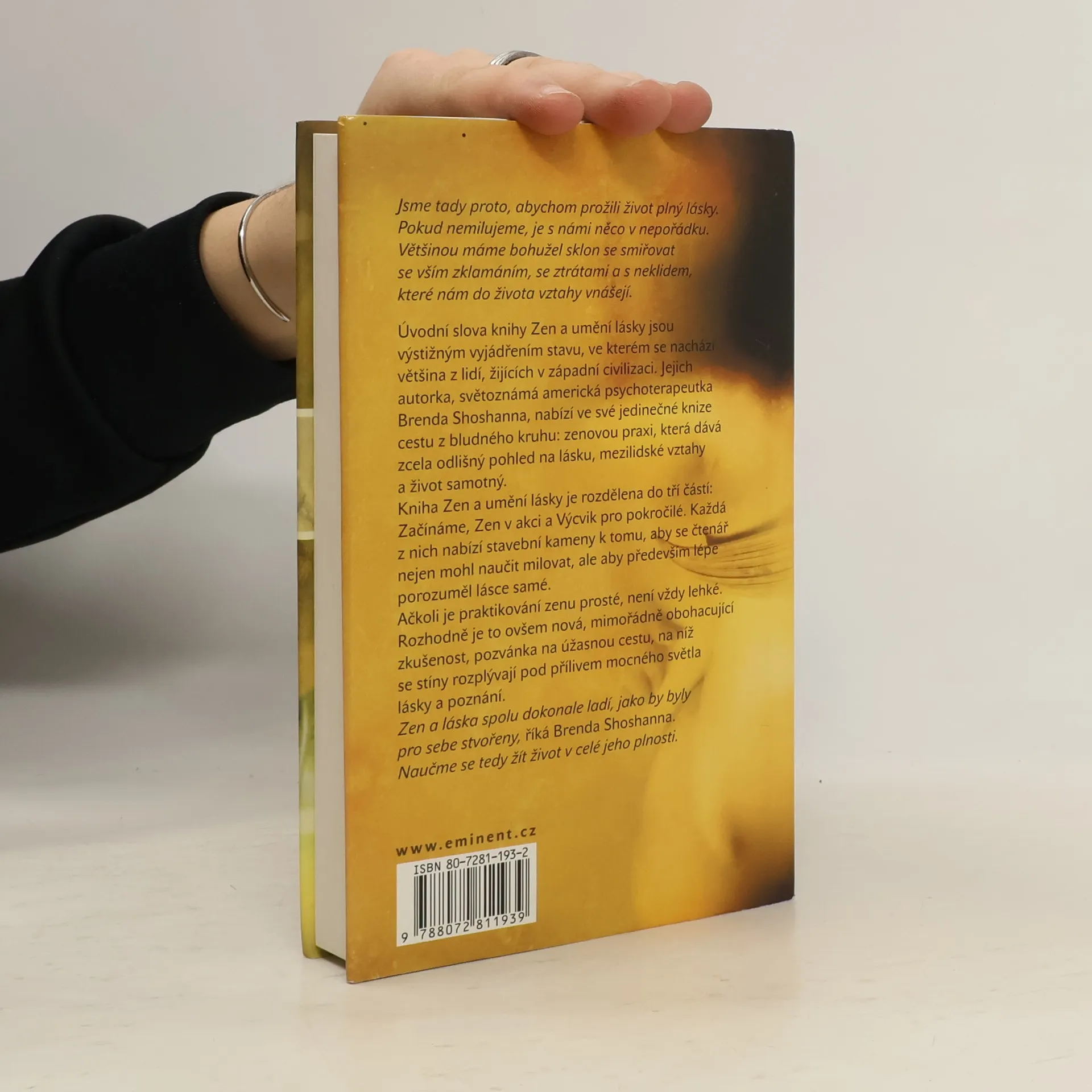 Jsme tady proto, abychom prožili život plný lásky. Pokud nemilujeme, je s námi něco v nepořádku. Většinou máme bohužel sklon se smiřovat se vším zklamáním, se ztrátami a s neklidem, které nám do života vztahy vnášejí. Úvodní slova knihy Zen a umění lásky jsou výstižným vyjádřením stavu, ve kterém se nachází většina z lidí, žijících v západní civilizaci. Jejich autorka, světoznámá americká psychoterapeutka Brenda Shoshanna, nabízí ve své jedinečné knize cestu z bludného kruhu: zenovou praxi, která dává zcela odlišný pohled na lásku, mezilidské vztahy a život samotný. Kniha Zen a umění lásky je rozdělena do tří částí: Začínáme, Zen v akci a Výcvik pro pokročilé. Každá z nich nabízí stavební kameny k tomu, aby se čtenář nejen mohl naučit milovat, ale aby především lépe porozuměl lásce samé. Ačkoli je praktikování zenu prosté, není vždy lehké. Rozhodně je to ovšem nová, mimořádně obohacující zkušenost, pozvánka na úžasnou cestu, na níž se stíny rozplývají pod přílivem mocného světla lásky a poznání. Zen a láska spolu dokonale ladí, jako by byly Pro sebe stvořeny, říká Brenda Shoshanna. Naučme se tedy žít život v celé jeho plnosti.