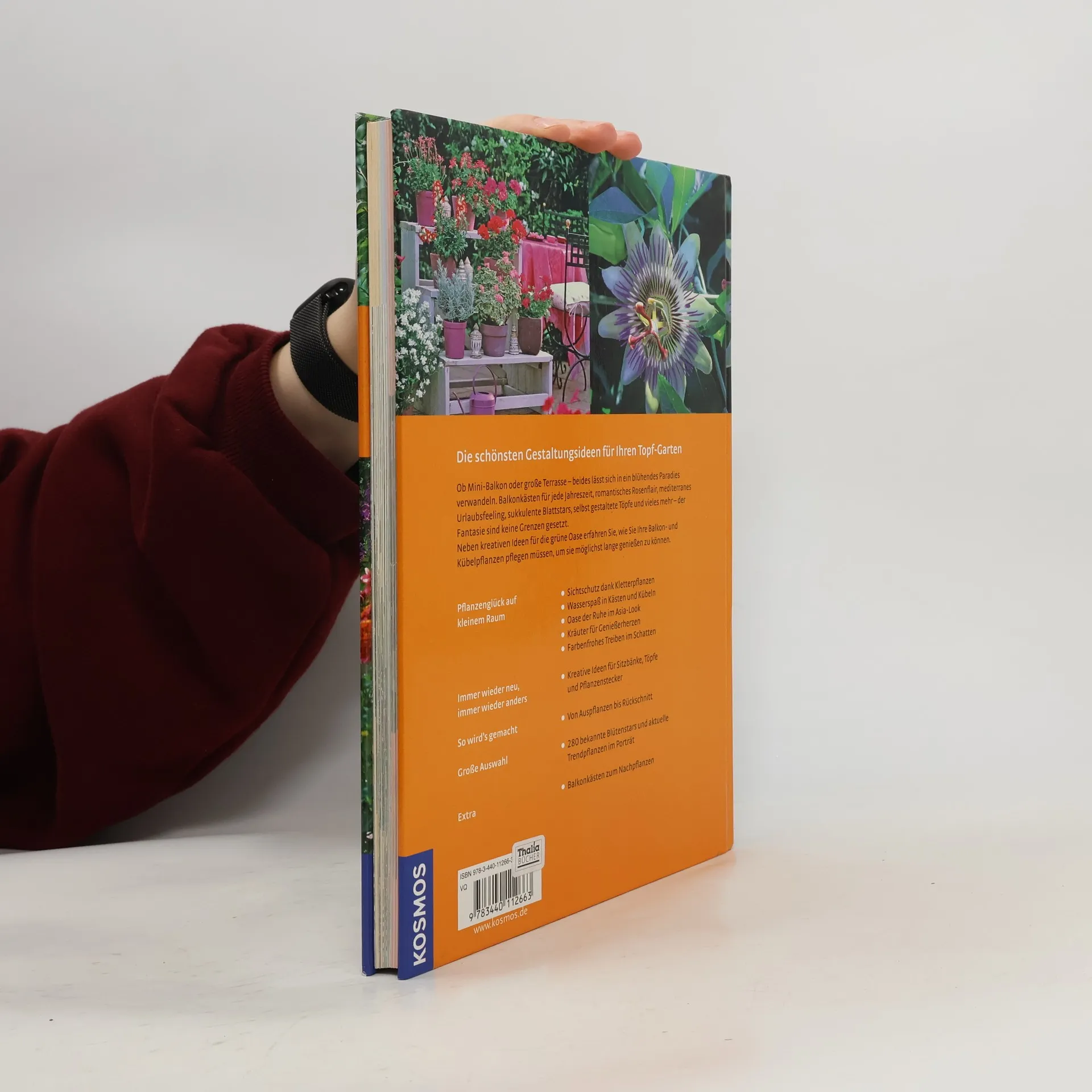 Die schönsten Gestaltungsideen für Ihren Topf-Garten. Ob Mini-Balkon oder große Terrasse - beides lässt sich in ein blühendes Paradies verwandeln. Balkonkästen für jede Jahreszeit, romantisches Rosenflair, mediterranes Urlaubsfeeling, sukkulente Blattstars, selbst gestaltete Töpfe und vieles mehr - der Fantasie sind keine Grenzen gesetzt. Neben kreativen Ideen für die grüne Oase erfahren Sie, wie Sie Ihre Balkon- und Kübelpflanzen pflegen müssen, um sie möglichst lange genießen zu können. Pflanzenglück auf kleinem Raum: Sichtschutz dank Kletterpflanzen, Wasserspaß in Kästen und Kübeln, Oase der Ruhe im Asia-Look, Kräuter für Genießerherzen, Farbenfrohes Treiben im Schatten, jetzt wird's bunt - der Herbst trumpft auf. Immer wieder neu, immer wieder anders: Kreative Ideen für Sitzbänke, Töpfe und Pflanzenstecker. So wird's gemacht: Von Auspflanzen bis Rückschnitt. Große Auswahl: 280 bekannte Blütenstars und aktuelle Trendpflanzen im Porträt. Extra: Balkonkästen, Kübel und Blumenampeln zum Nachpflanzen.