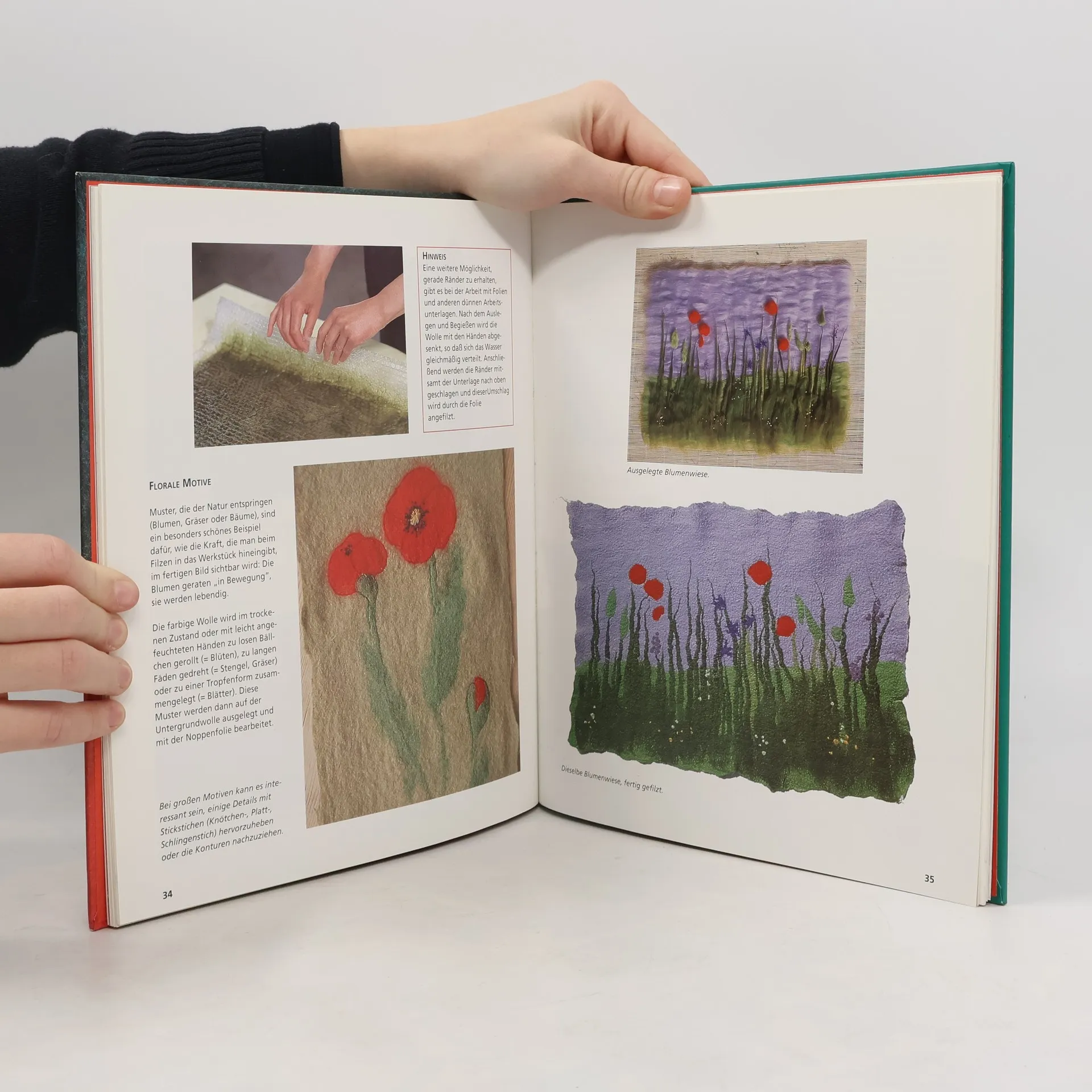 Eine der ältesten textilen Arbeitsweisen, das Verfilzen von ungesponnener Wolle, liegt heute wieder voll im Trend. Die Technik hat sich seit 2000 Jahren kaum verändert: Mit Hilfe von Wasser und Seife werden die Wollfasern so lange geknetet und gewalkt, bis sie zusammenschrumpfen und sich zu einer dichten Filzdecke verbinden. Die Filzteile werden über Formstöcken, zwischen Bastmatten oder einfach am Modell selbst in Form gebracht. Neue Formen und Farben machen aus dieser archaischen Technik ein modernes und interessantes Hobby.