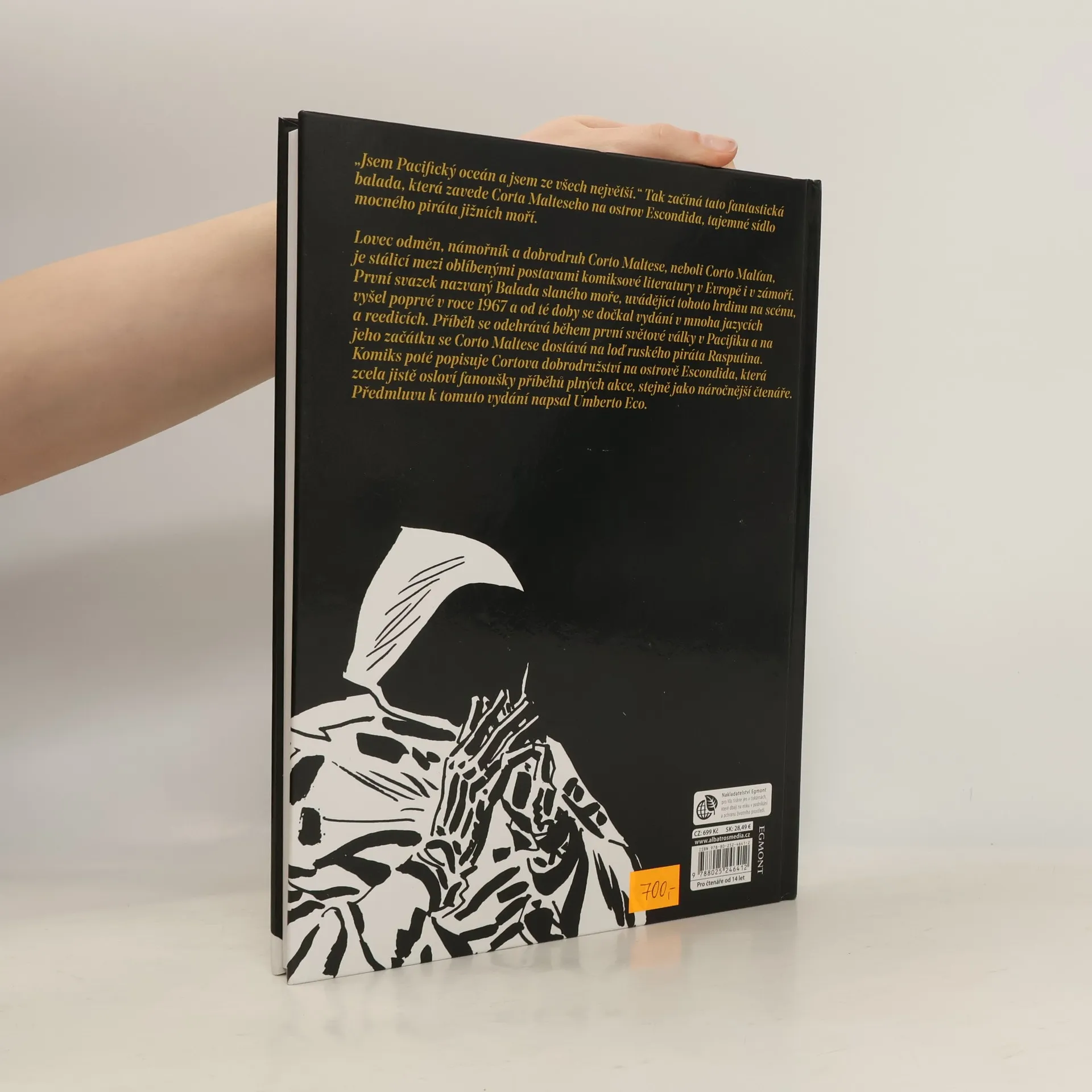 „Jsem Pacifický oceán a jsem ze všech největší.“ Tak začíná tato fantastická balada, která zavede Corta Malteseho na ostrov Escondida, tajemné sídlo mocného piráta jižních moří. Lovec odměn, námořník a dobrodruh Corto Maltese, neboli Corto Malťan, je stálicí mezi oblíbenými postavami komiksové literatury v Evropě i v zámoří. První svazek nazvaný Balada slaného moře, uvádějící tohoto hrdinu na scénu, vyšel poprvé v roce 1967 a od té doby se dočkal vydání v mnoha jazycích a reedicích. Příběh se odehrává během první světové války v Pacifiku a na jeho začátku se Corto Maltese dostává na loď ruského piráta Rasputina. Komiks poté popisuje Cortova dobrodružství na ostrově Escondida, která zcela jistě osloví fanoušky příběhů plných akce, stejně jako náročnější čtenáře. Předmluvu k tomuto vydání napsal Umberto Eco.